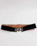 Пояс из натуральной замши с металлической пряжкой. Широкий пояс уверенно сидит на талии, массивная металлическая пряжка придает акцент.