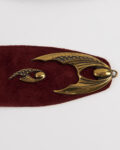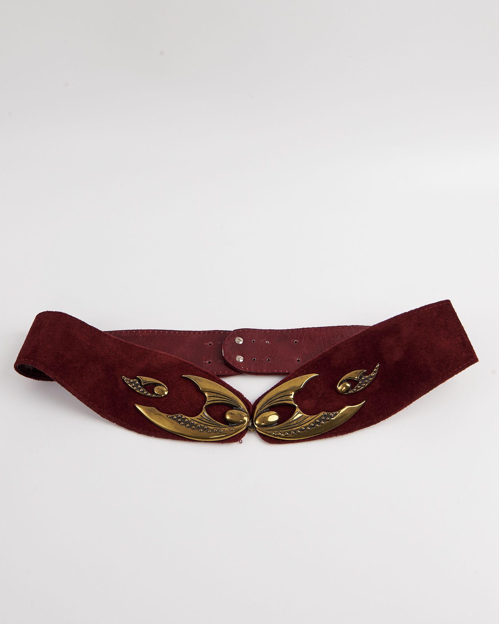 Ремень из натуральной кожи.  Посадка регулируется застежкой на кнопки сзади. глубокий винный оттенок и акцентная массивная металлическая пряжка с рельефным орнаментом.