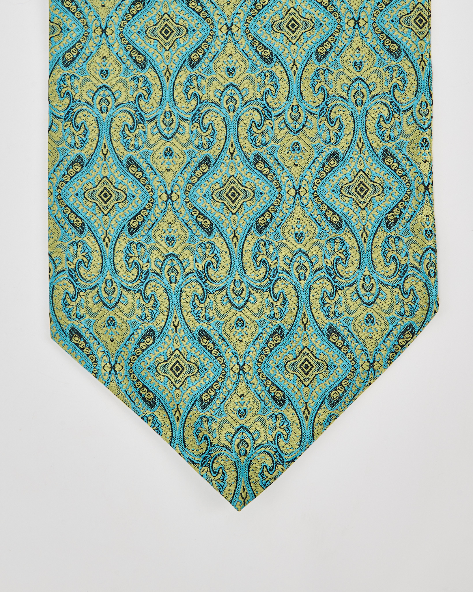 Винтажный галстук из плотного шелка с орнаментом, который притягивает взгляд глубиной цвета. Сложный рисунок с восточными мотивами, редкое сочетание оттенков.