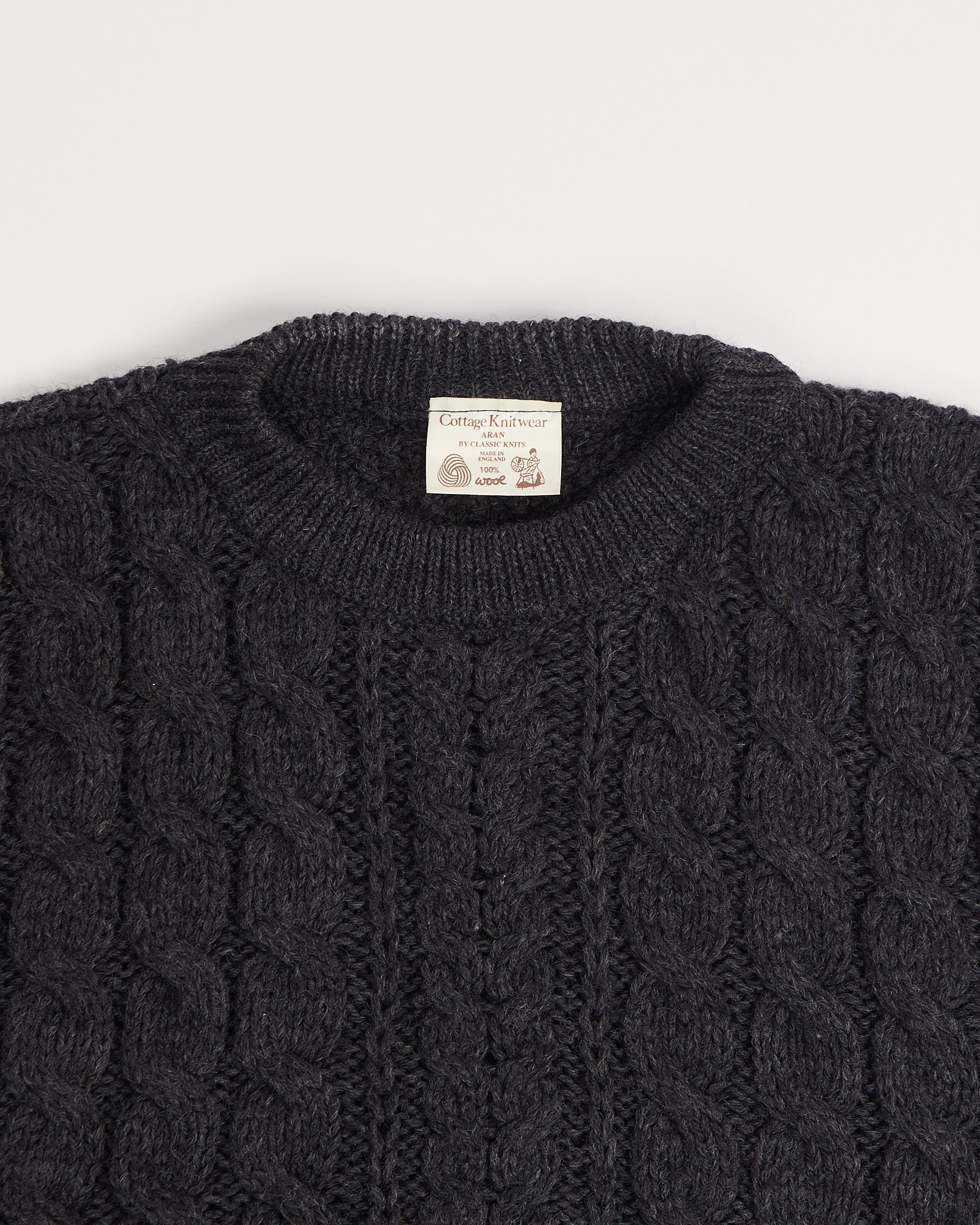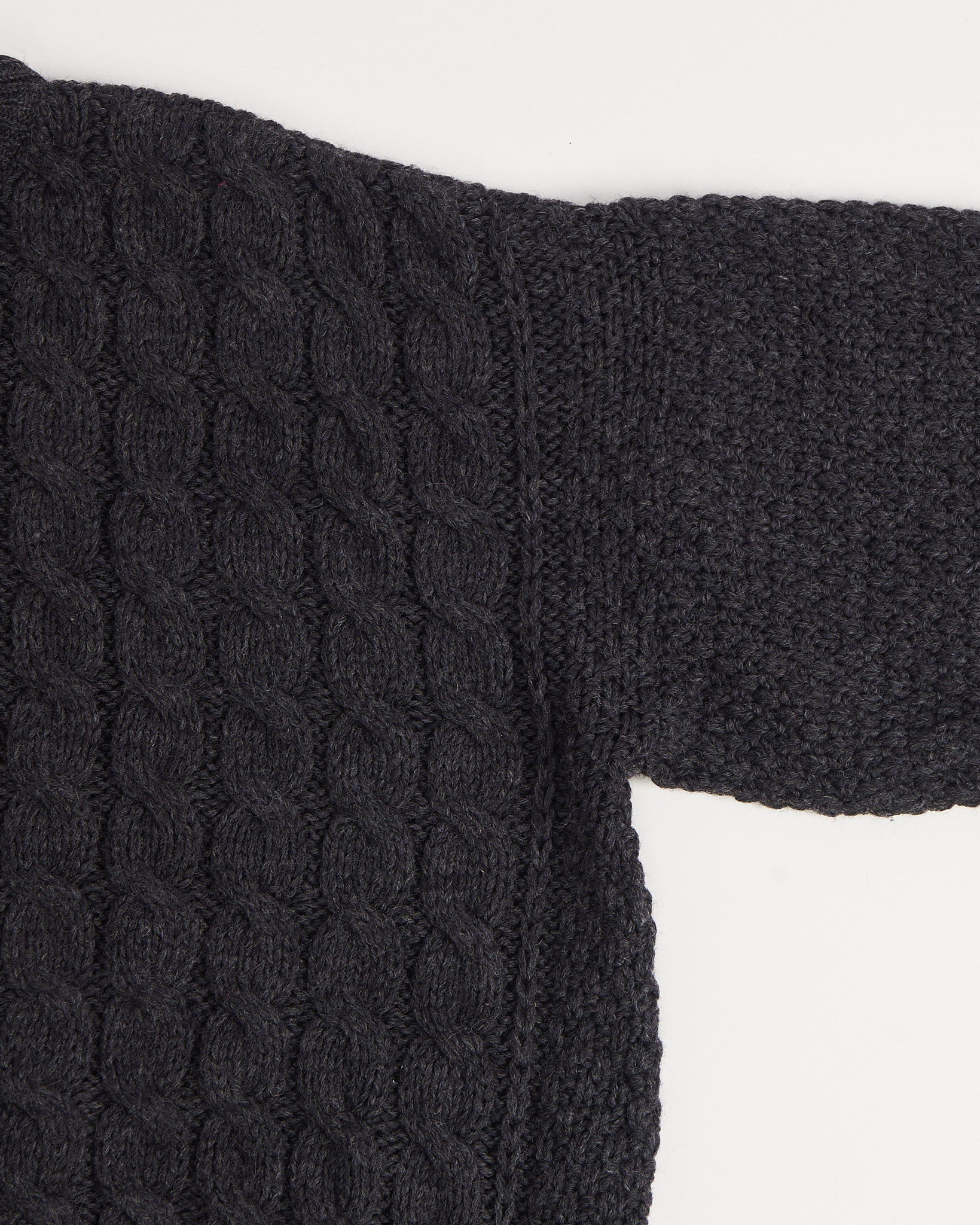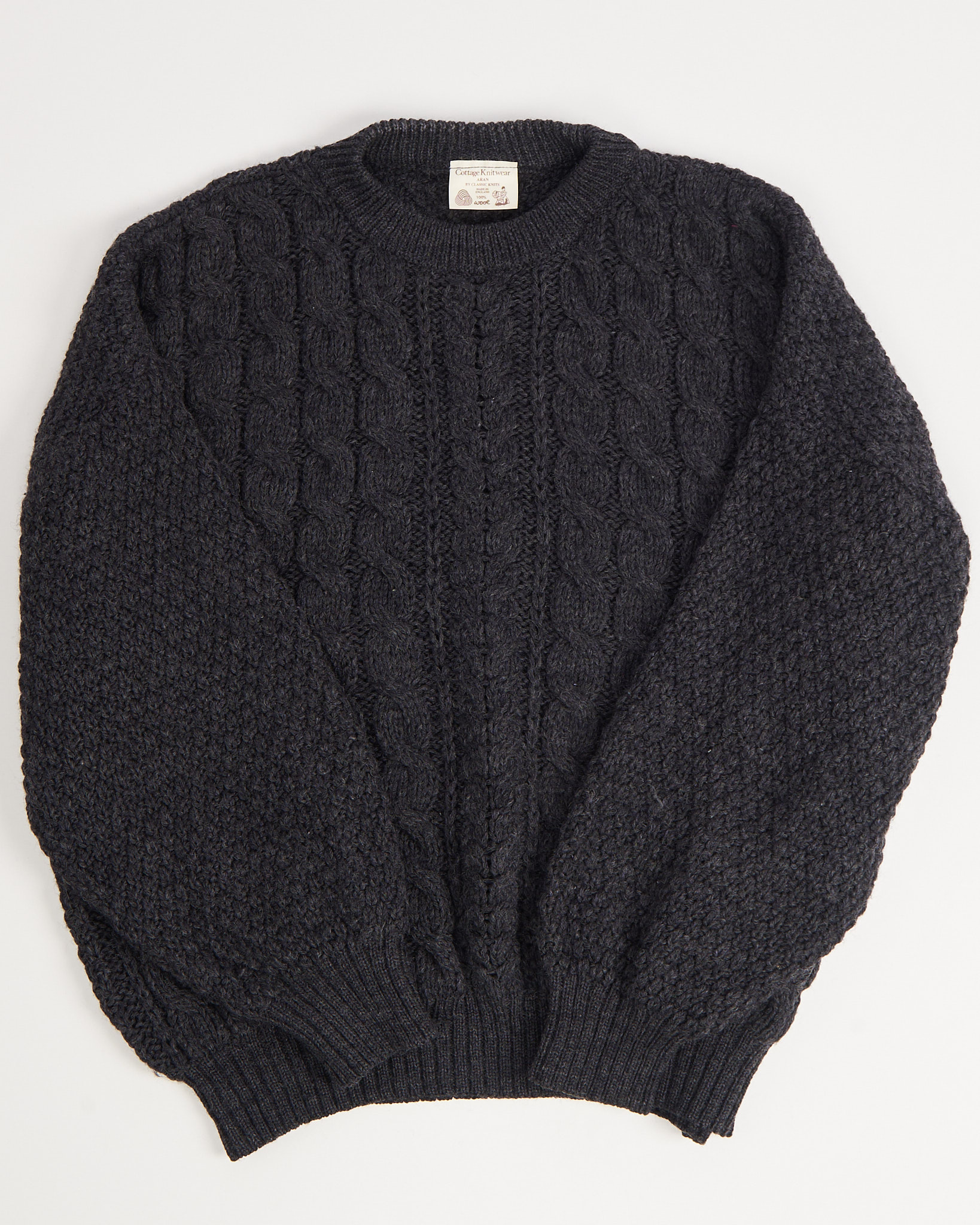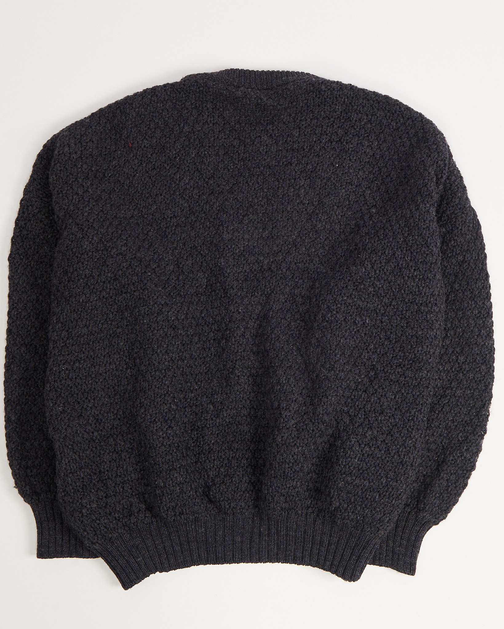 Свитер из чистой шерсти премиального качества графитового оттенка из Ирландии. Материал немного шероховатый, в свитере комфортно и тепло. Посадка свободная, с мягкими плечами. Отмечен значком woolmark.