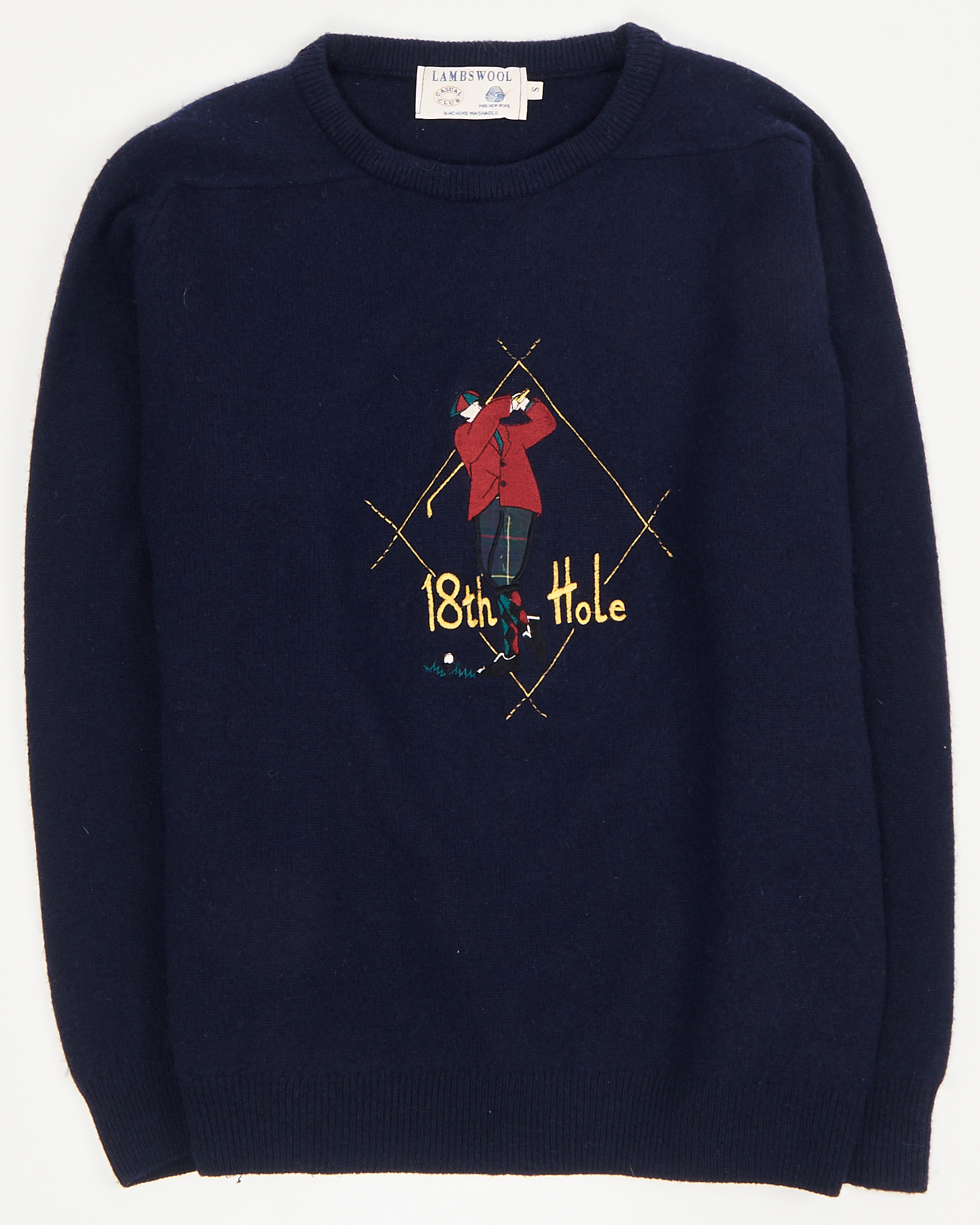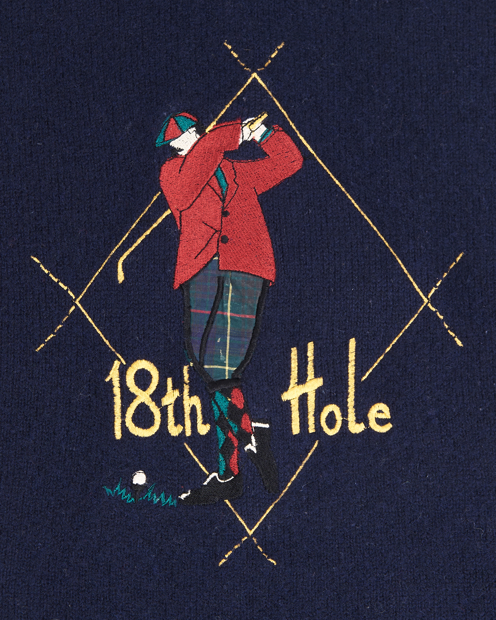Шерстяной свитер с вышивкой “18th Hole”. Свитер  из натуральной шерсти, посадка прямая. Акцентная вышивка с гольфистом, итальянское производство.