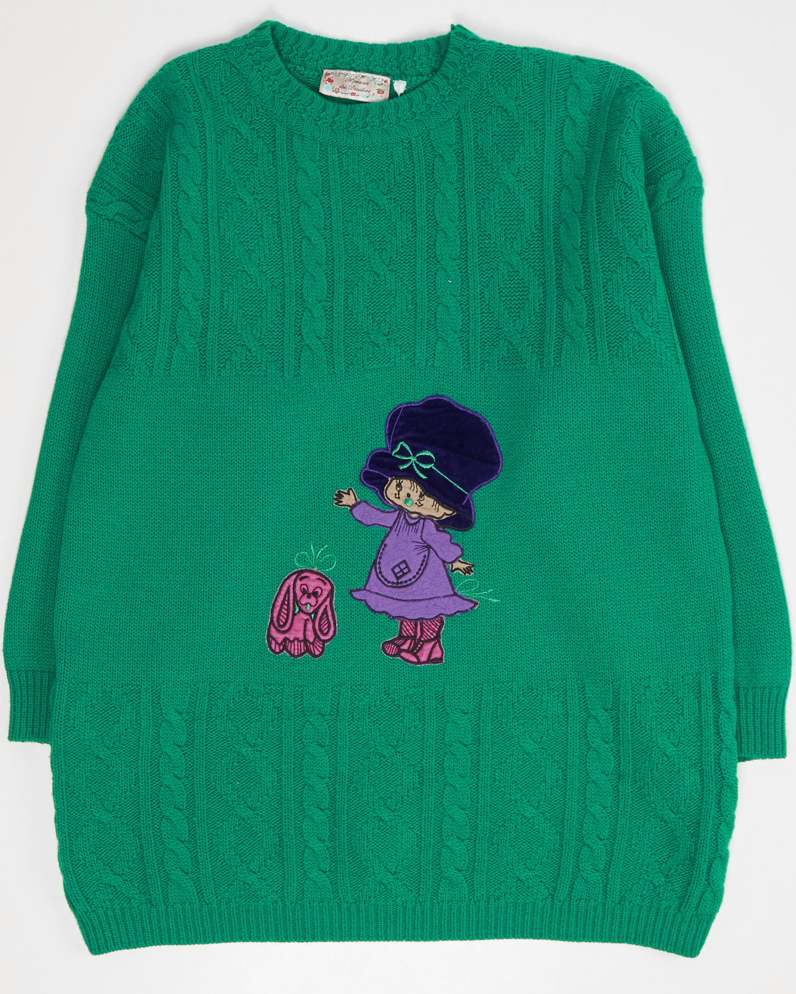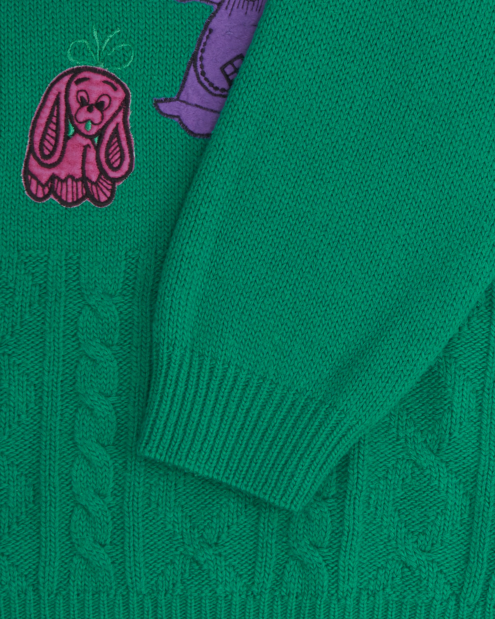 Свитер из смеси шерсти ягнёнка и акрила. Свободная посадка, даёт расслабленный силуэт и удобство в движении. Акцентом служит крупная нашивка с персонажем.