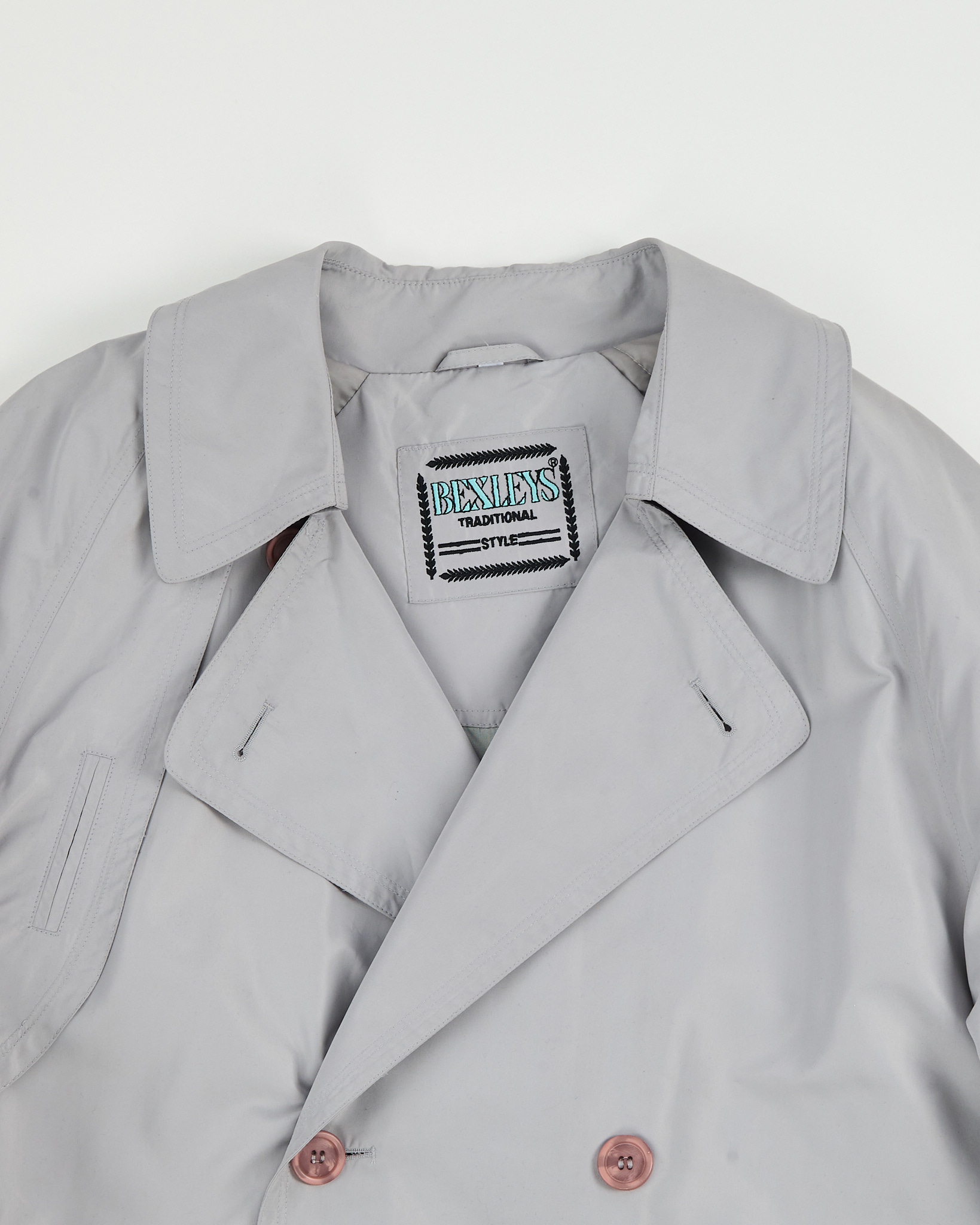 Тренч Bexleys Traditional Style светло-серого оттенка. Прямая посадка с поясом позволяет регулировать силуэт. Двубортная конструкция, погоны и защитная кокетка. Контрастная тёплая клетчатая подкладка.