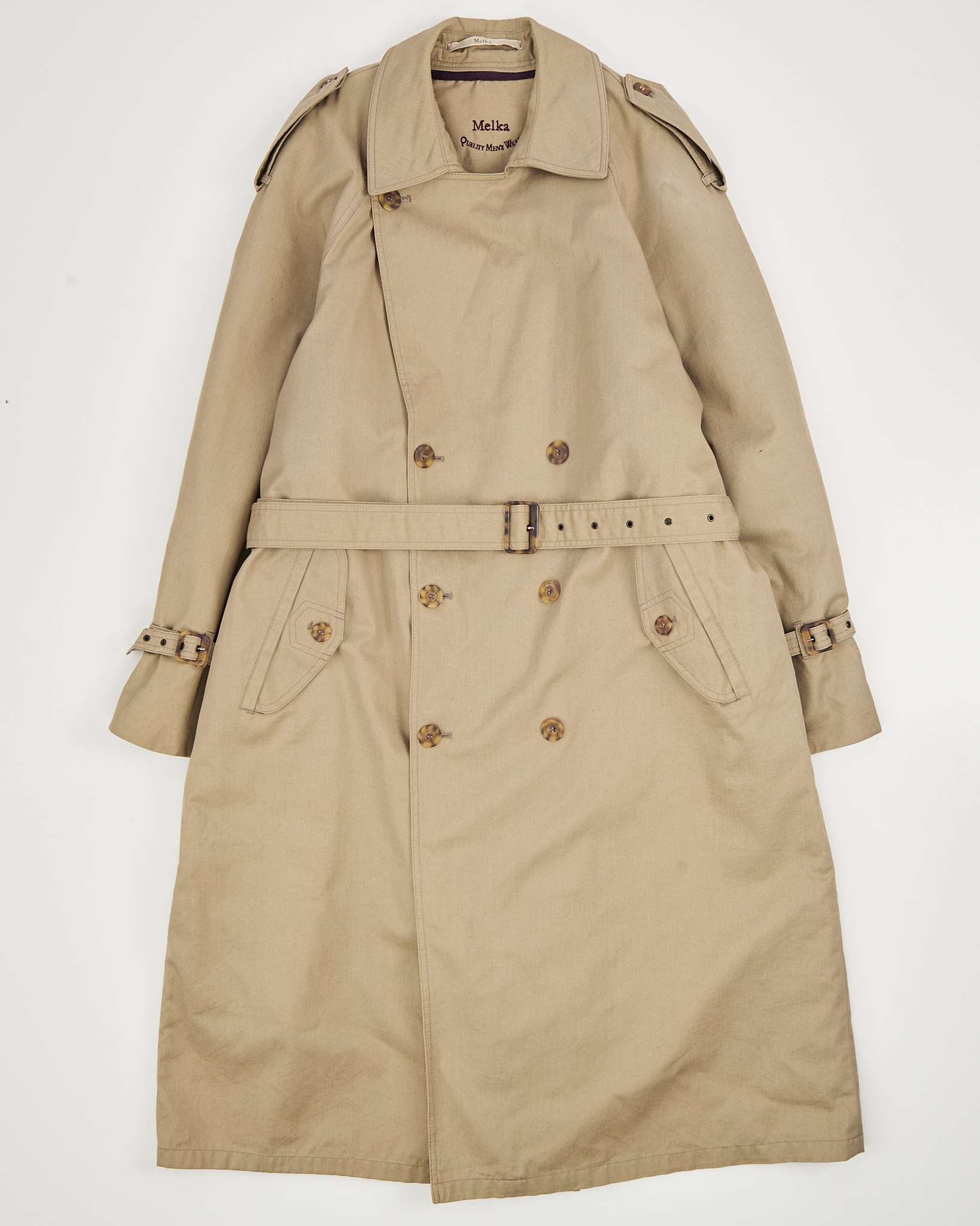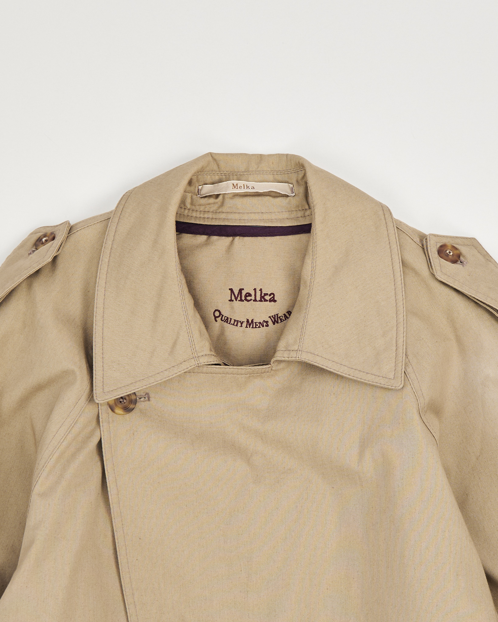 Тренч Melka в классическом стиле из 100% натурального хлопка. Посадка свободная, пояс подчёркивает линию талии и регулирует объём. Контрастная подкладка и утепленная внутренняя отделка на замке, погоны.