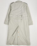 Теплый тренч в светло-бежевом оттенке из плотной ткани с добавлением шерсти. Прямая посадка с поясом позволяет регулировать силуэт. Двубортная застёжка, погоны и глубокие карманы, контрастные пуговицы, функциональные карманы.