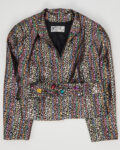 Жакет Fink с декоративным поясом. Фактурный жакет из плотной ткани с мерцающим многоцветным узором. Декоративные камни на поясе добавляют акцент. Вещь отражает характер бренда и редкое исполнение ткани.