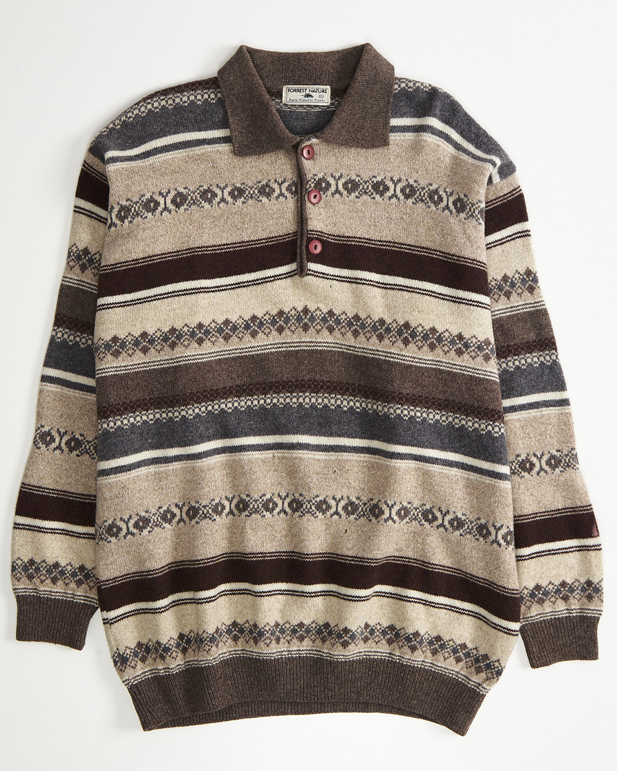 Модель с воротником-поло и мягкой посадкой, которая легко повторяет линии тела и создаёт комфорт в движении. Орнамент в спокойной гамме подчёркивает индивидуальность вещи. Планка на трёх пуговицах добавляет выразительность силуэту.