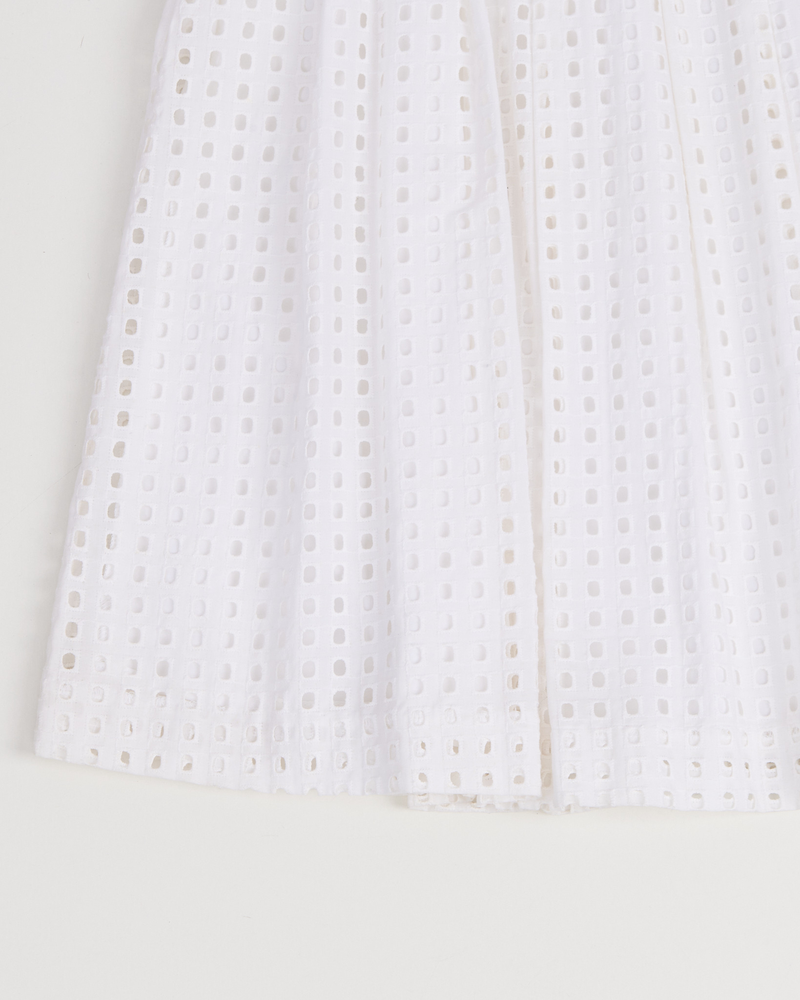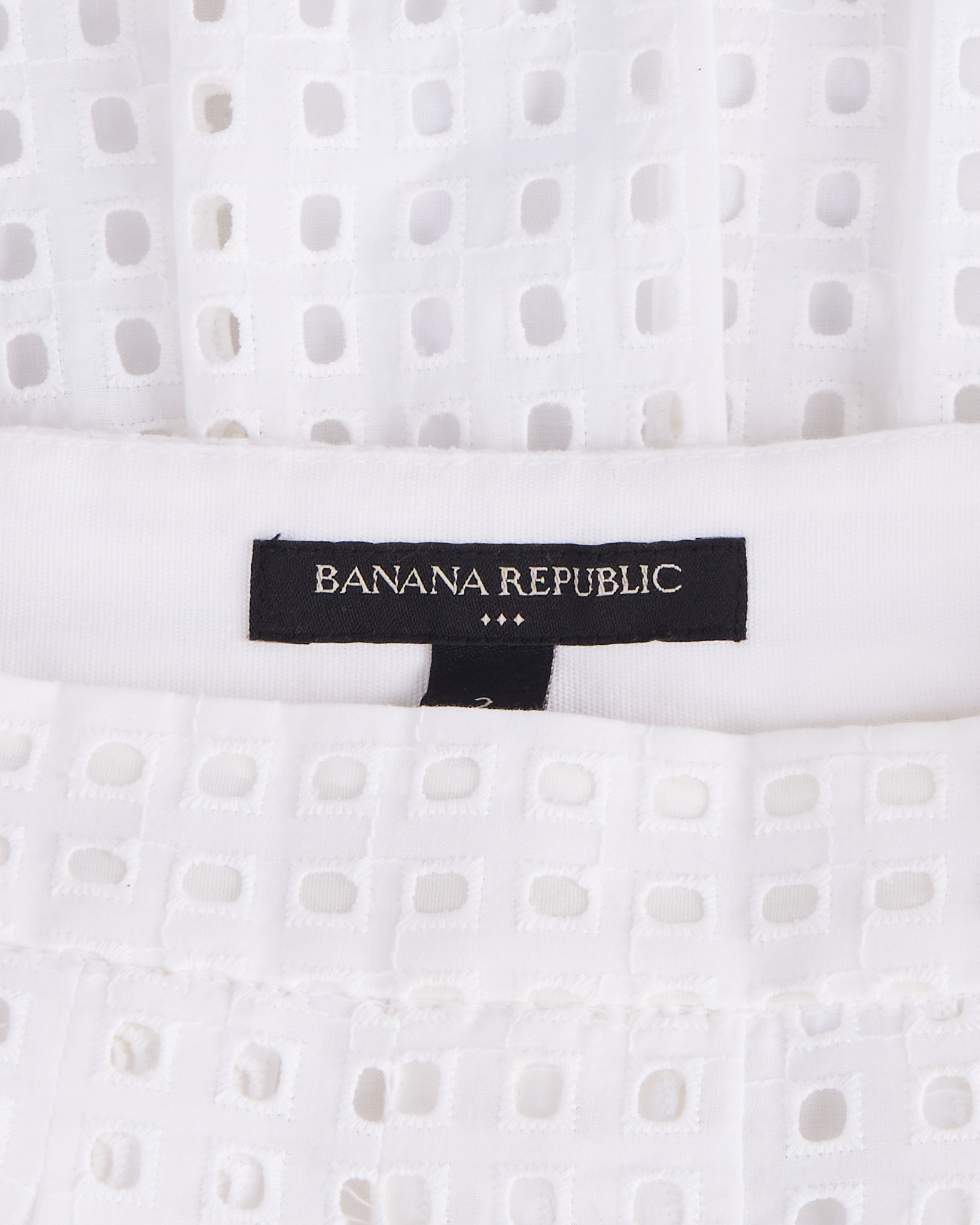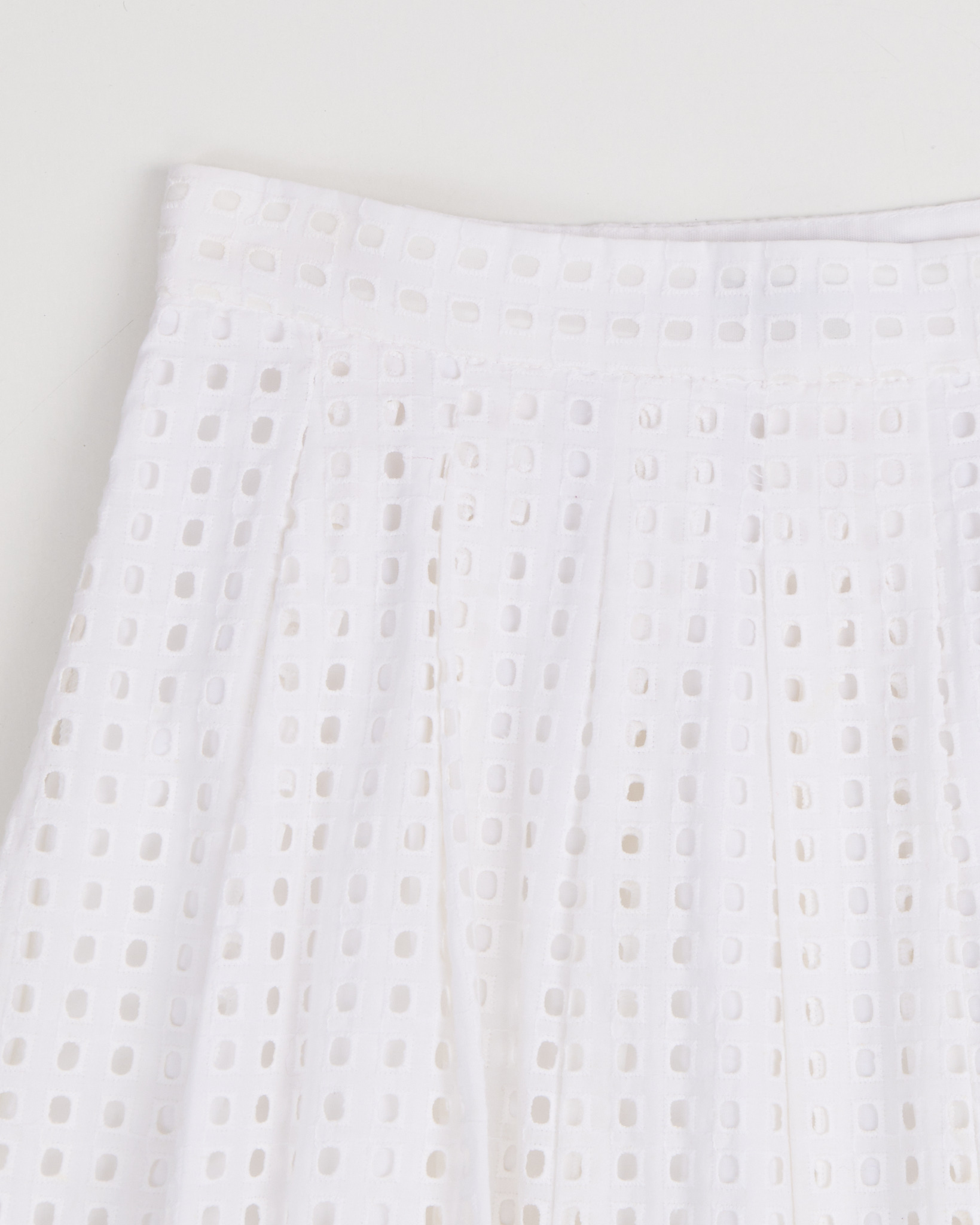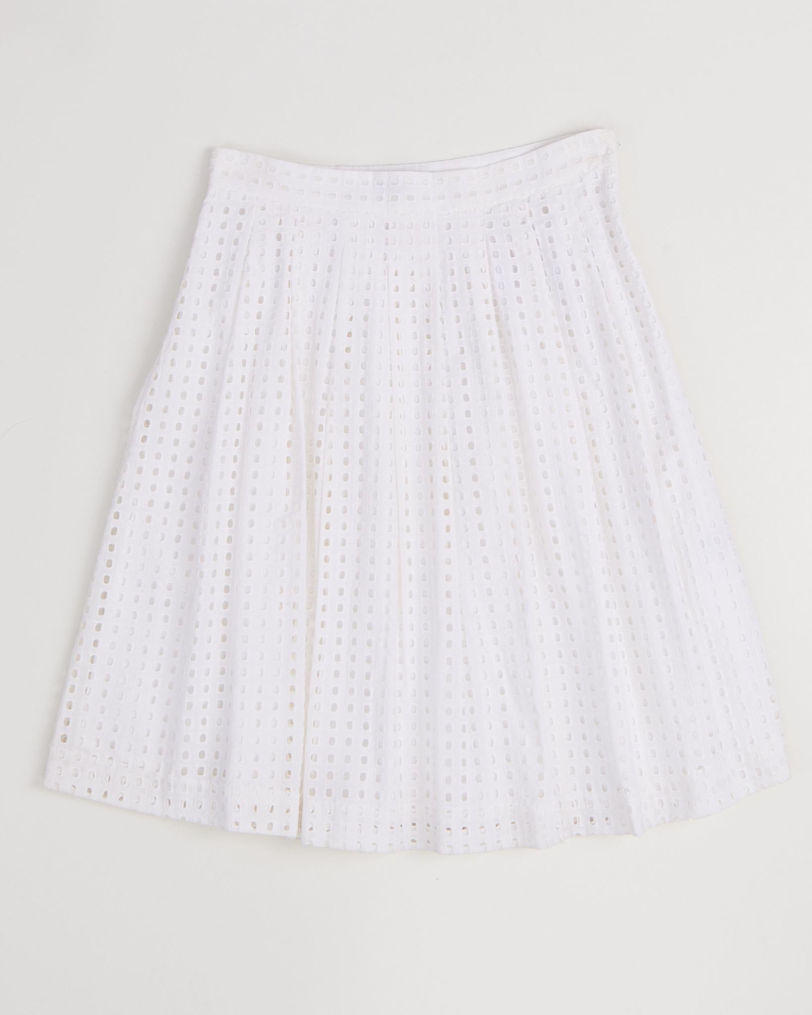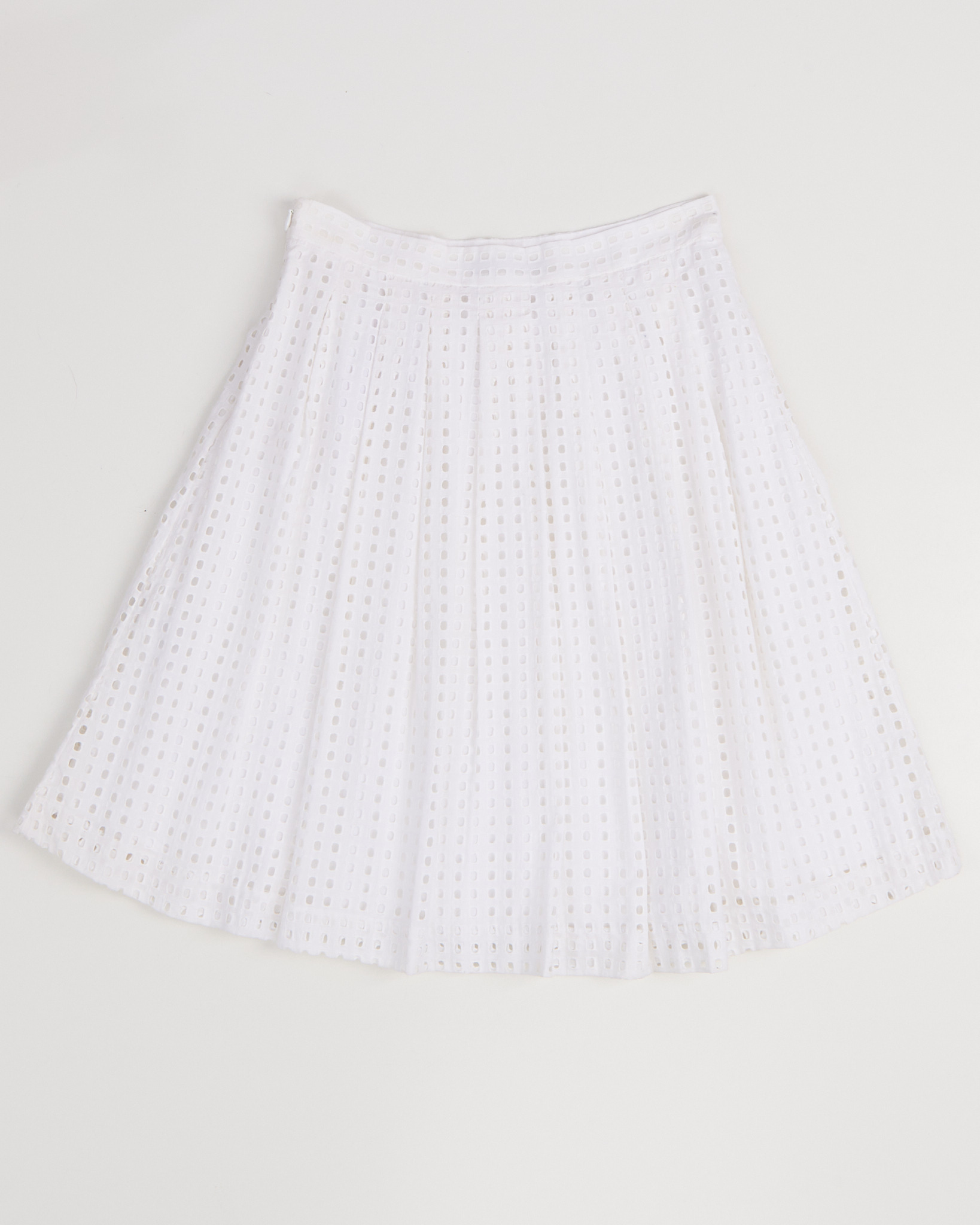Юбка Banana Republic из хлопка белого цвета. Поверхность с повторяющимся геометрическим рисунком. Высокая посадка. Складки мягко раскрываются по всей длине. Силуэт расклешенный. Скрытая застежка. Пояс дополнен плотной окантовкой.