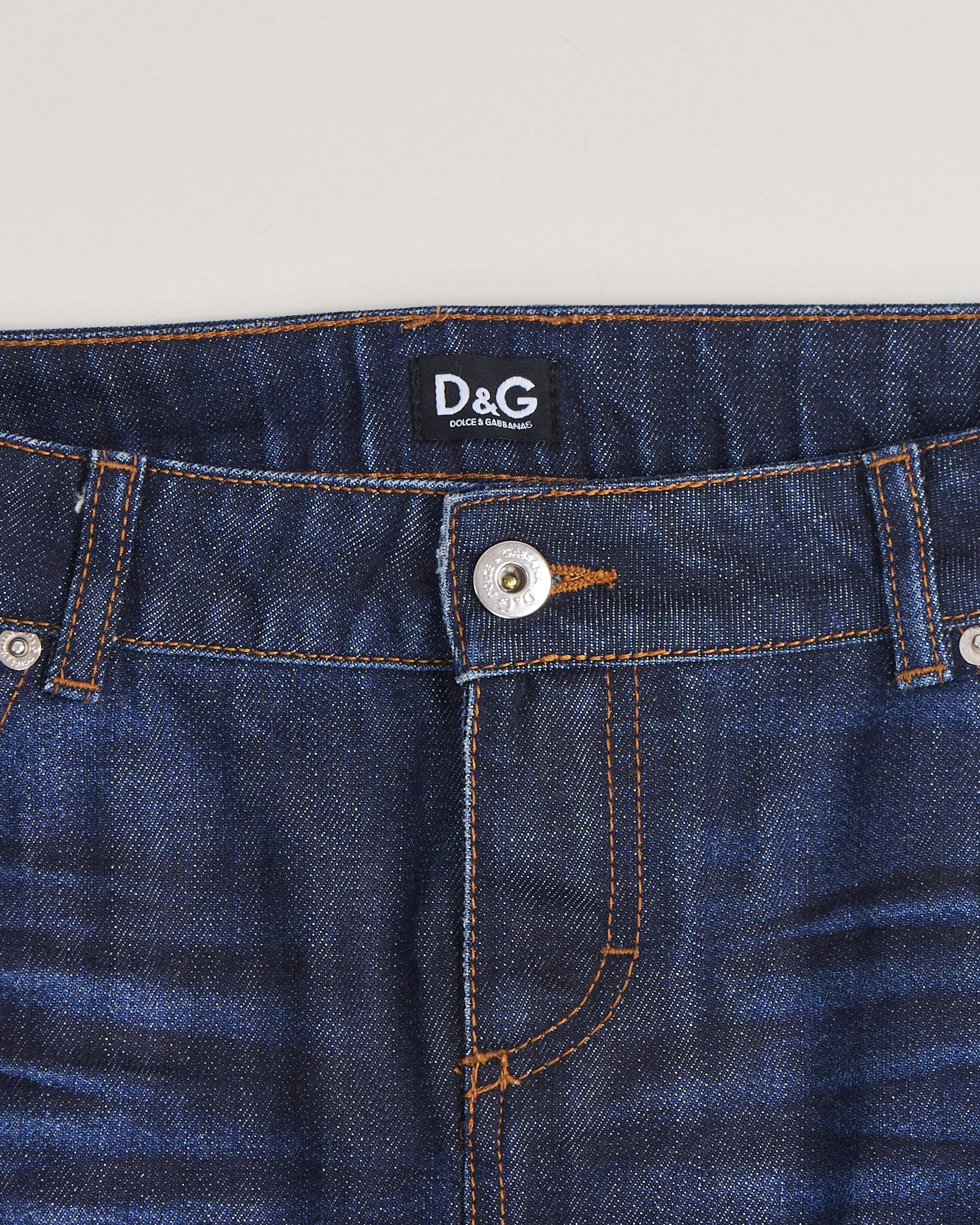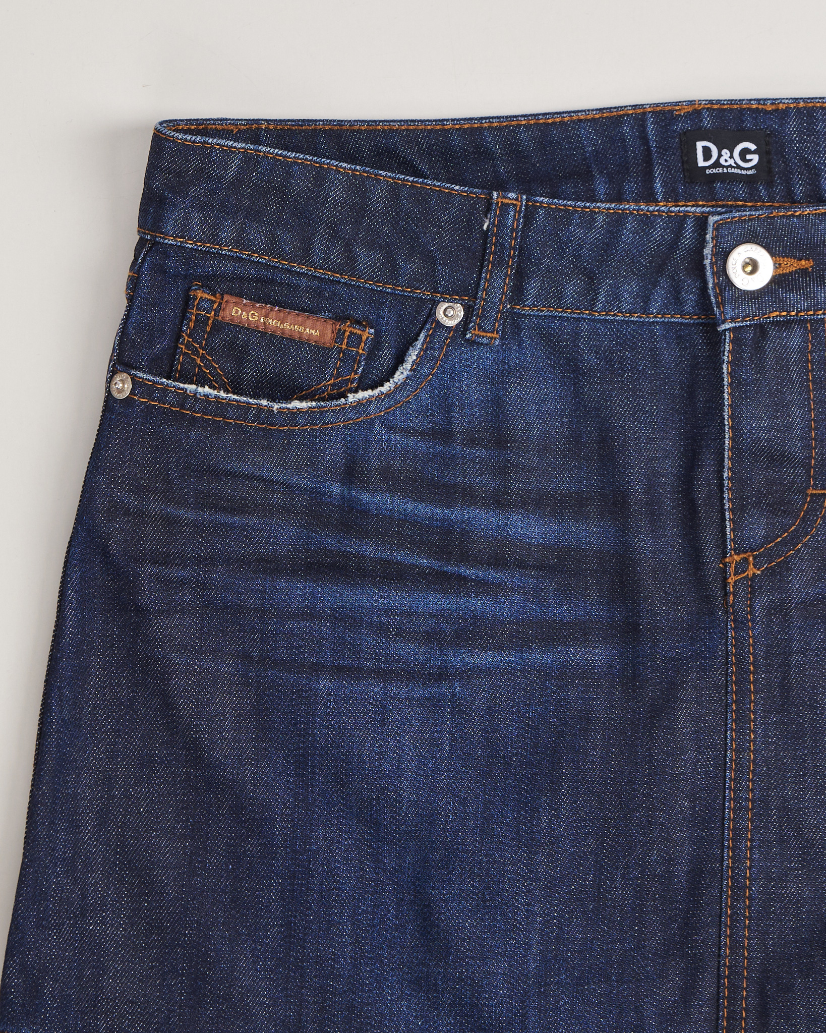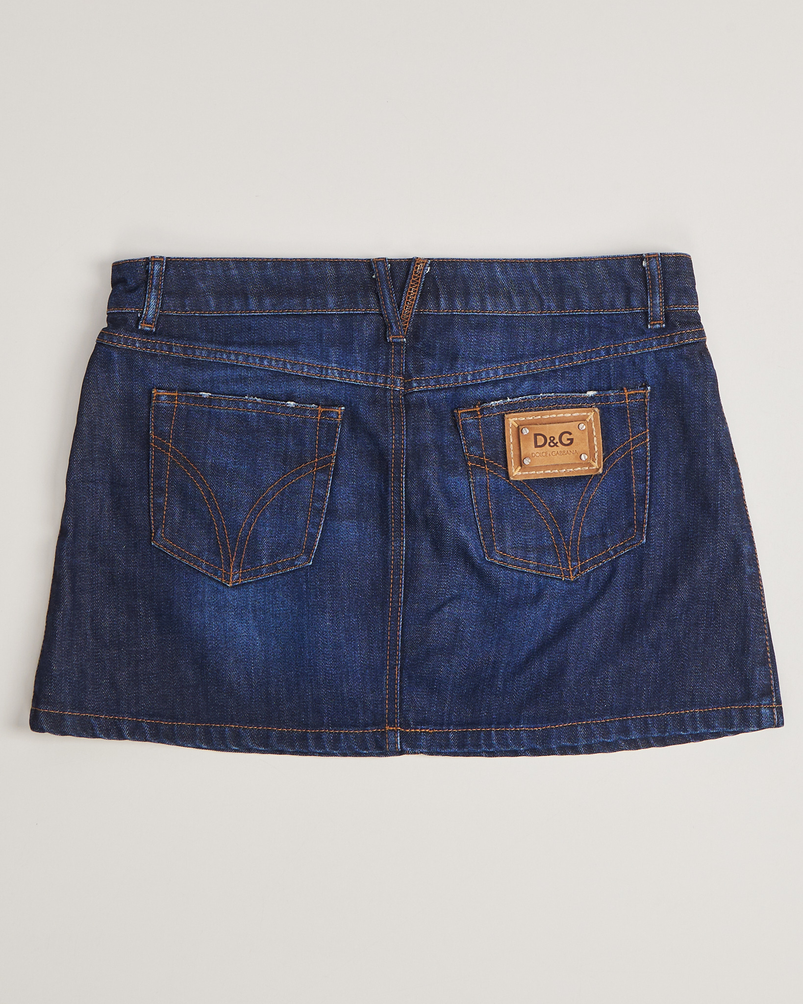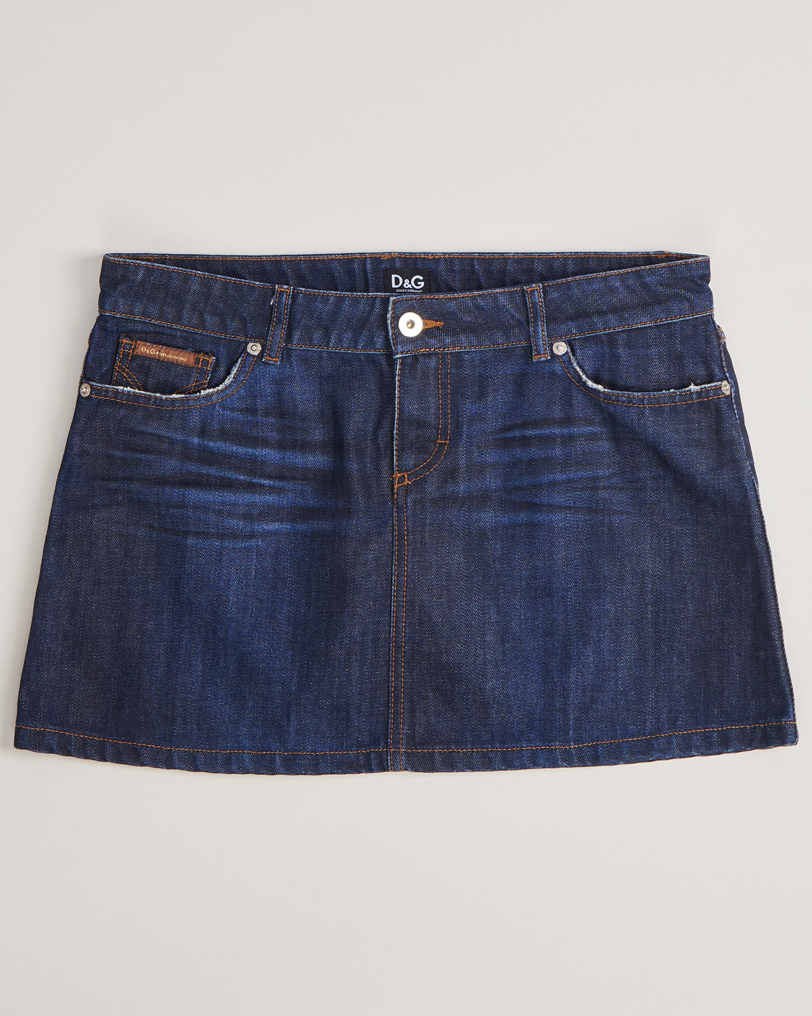 Юбка джинсовая Dolce & Gabbana темно - синего цвета. Облегающая посадка. Два функциональных кармана спереди и сзади. На заднем кармане фирменная нашивка из натуральной кожи. Брендированные пуговицы. Пояс усилен дополнительной строчкой.