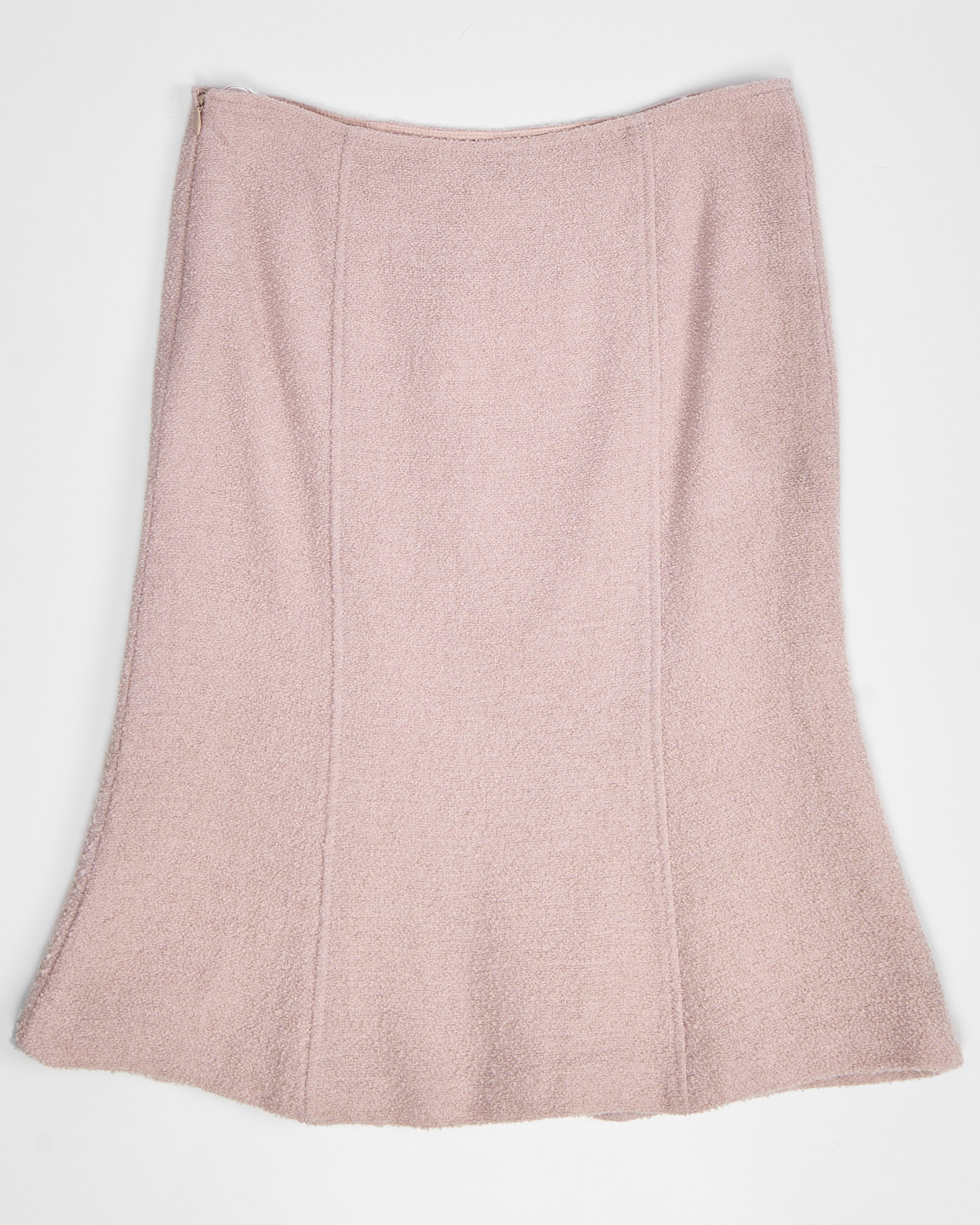 Юбка годе пыльно-розового цвета от итальянского бренда. Изделие выполнено из непереработанной шерсти с скрытым замком сбоку.