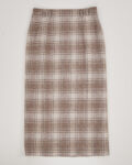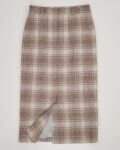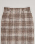 Юбка из шерстяной ткани в бежево-коричневой клетке. Форма-каранадаш с чёткой посадкой по линии талии и бёдер. Сзади акцентный разрез.