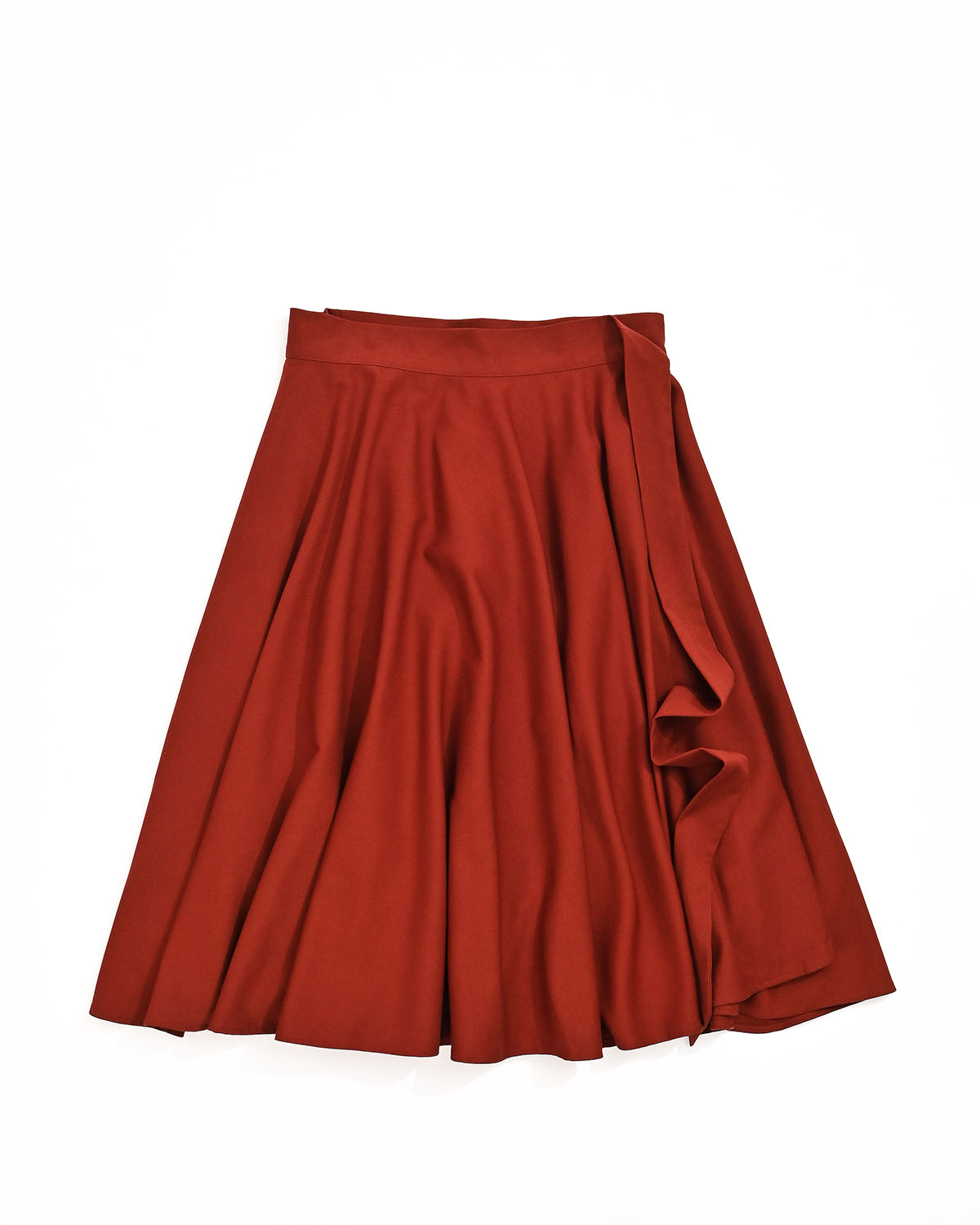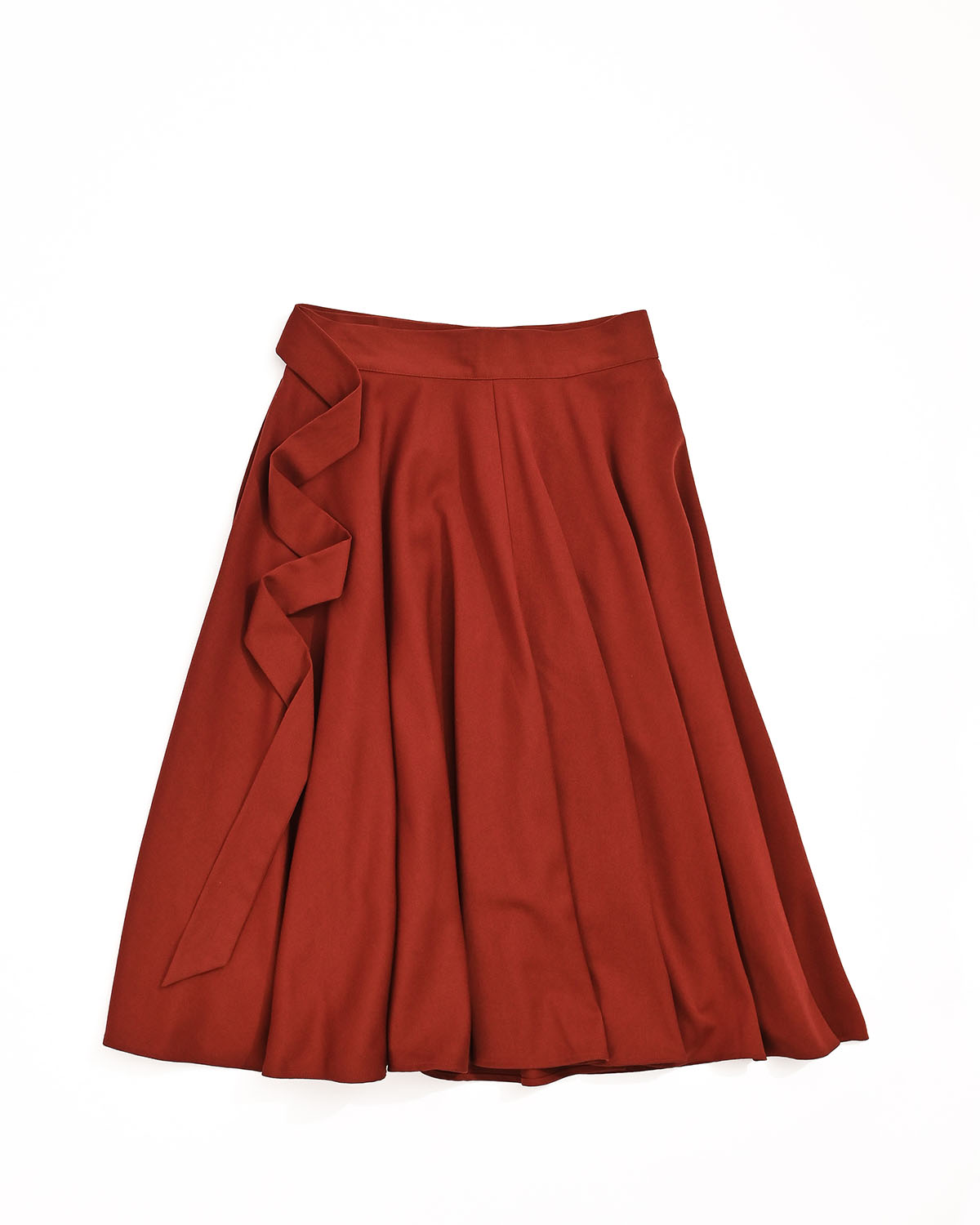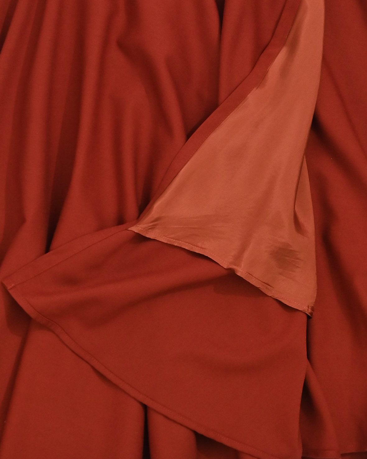 • Выполнена из плотной ткани кирпично-терракотового оттенка, приятной на ощупь и пластично драпирующейся при движении.