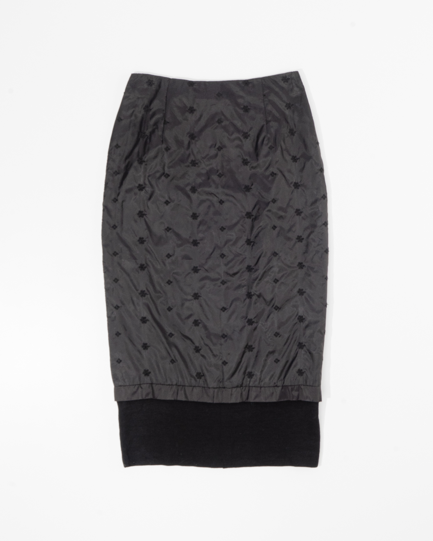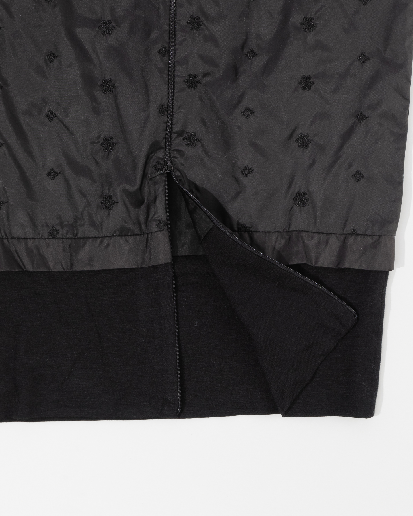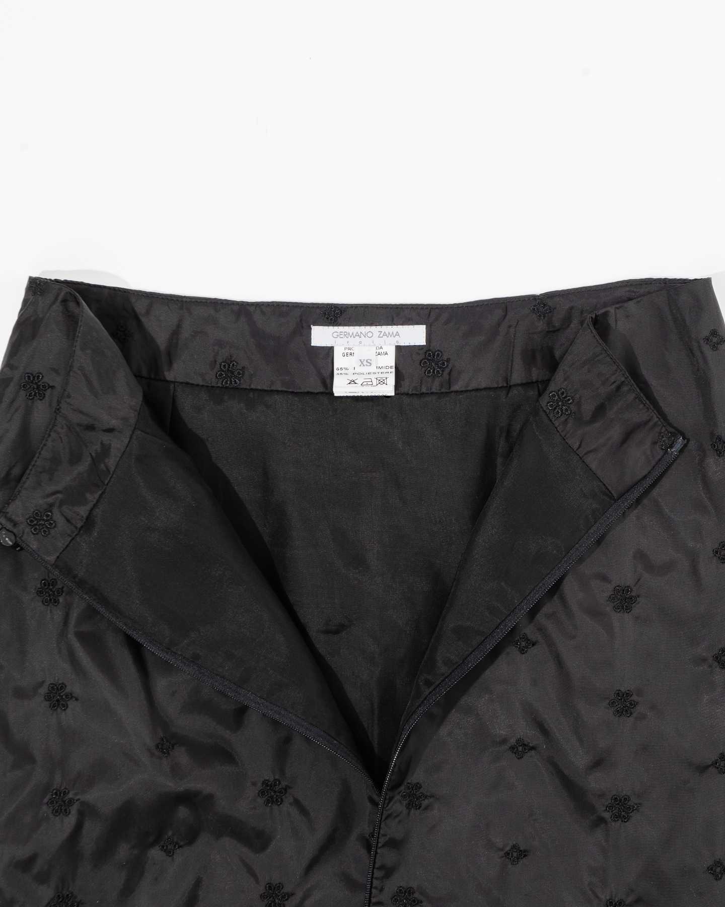 - Вышитый узор в виде цветов добавляет фактуры глубокому черному цвету .