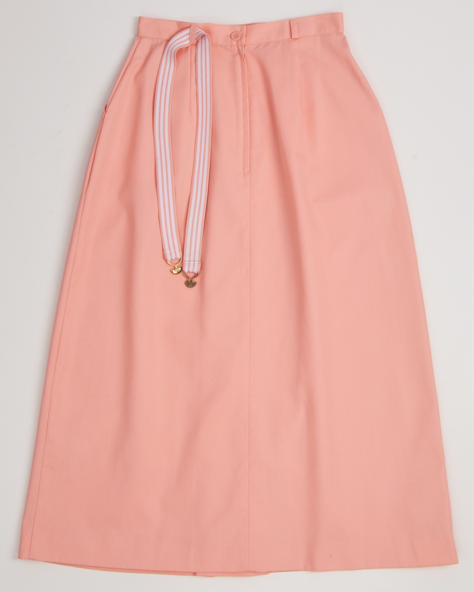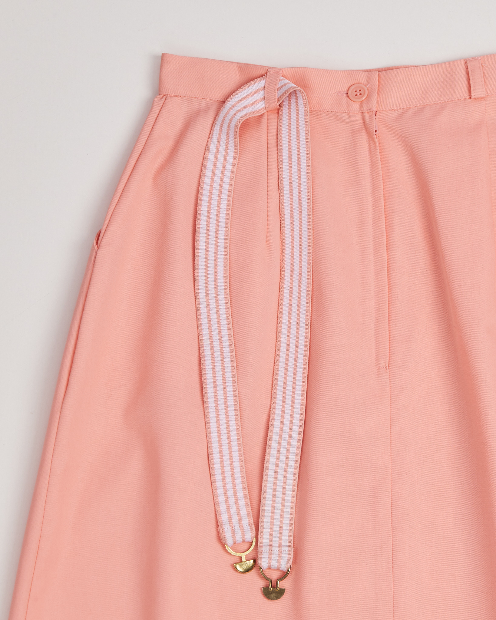 Юбка из хлопка с добавлением полиэстера в нежно-розовом оттенке. Длина миди. Пояс съемный. Два боковых функциональных кармана.