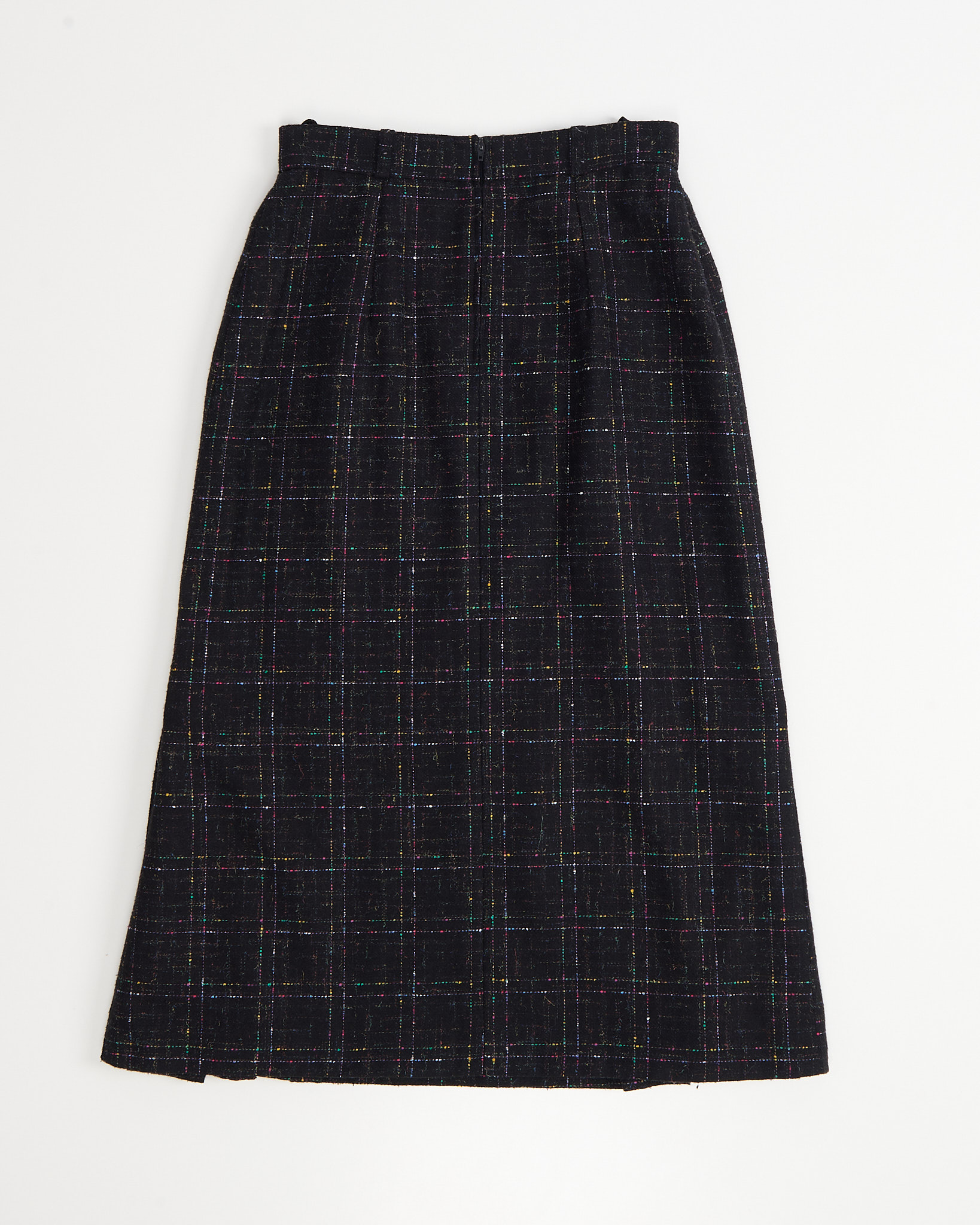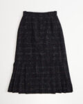 Посадка ровная по линии талии, силуэт прямой с расширением за счет глубоких складок внизу. Мелкая клетка  формирует рисунок и подчеркивает модель. Плиссированная часть добавляет изделию динамику и делает модель запоминающейся.