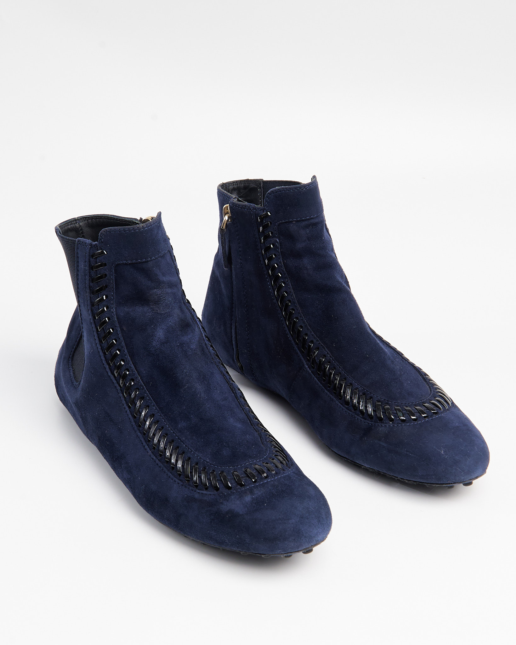 Замшевые ботинки Tod's с акцентным плетением. Эластичные вставки по бокам, подошва с резиновыми шипами.