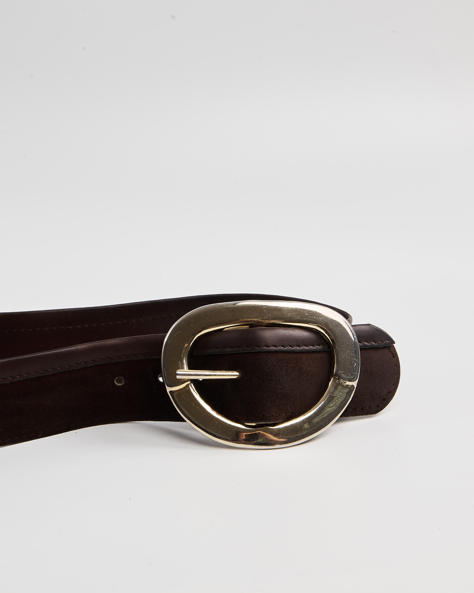 Замшевый ремень Vogue с акцентной пряжкой. Массивная золотистая пряжка и