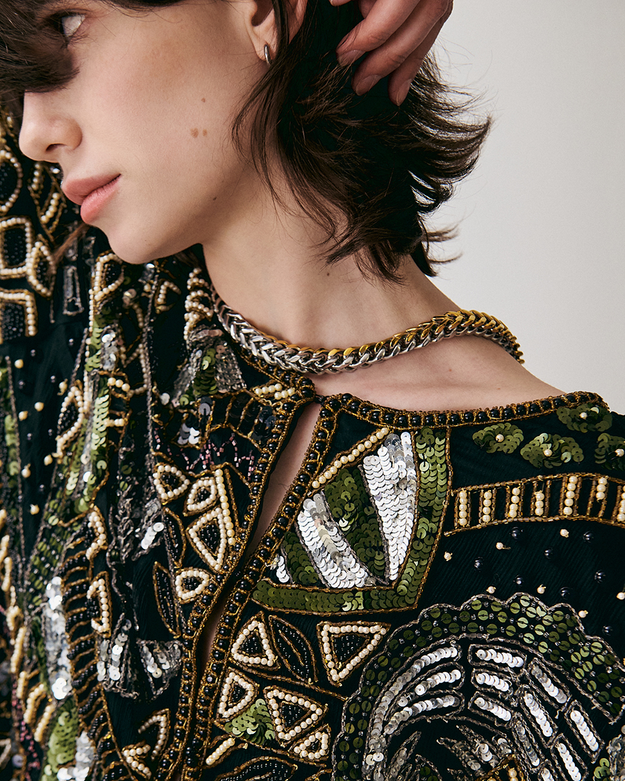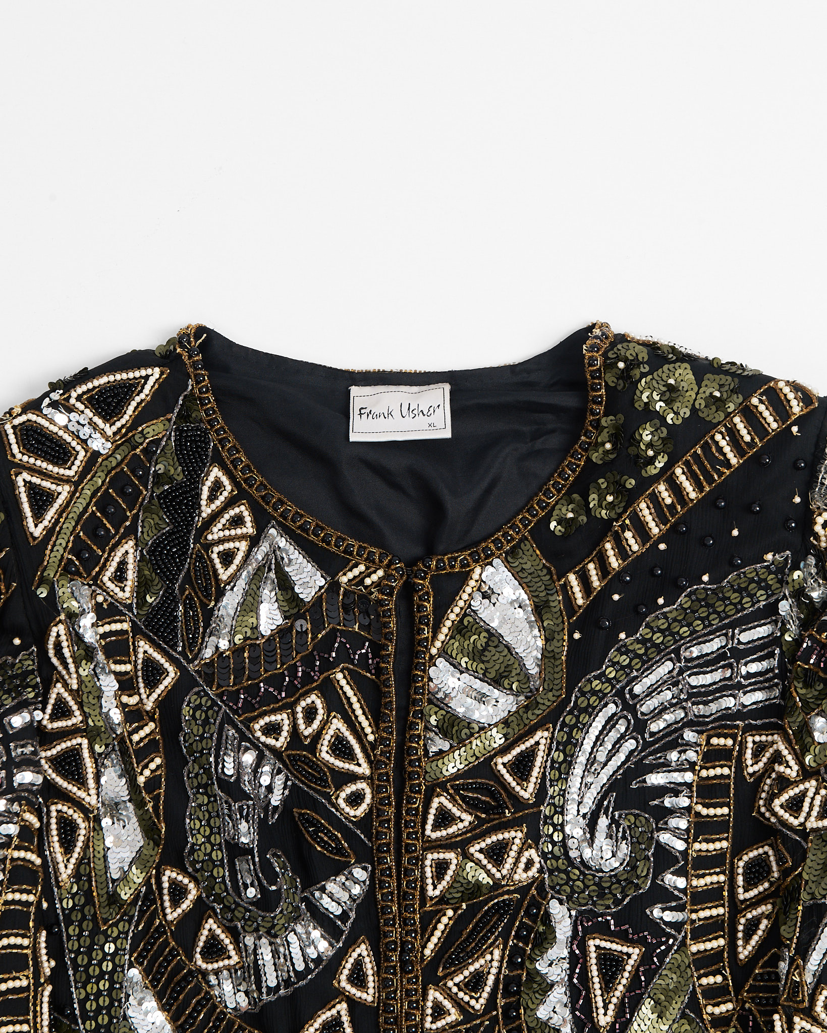Жакет Frank Usher с вышивкой в стиле ар-деко. Вышивка из бусин и пайеток, прямой свободный крой, ручная работа.