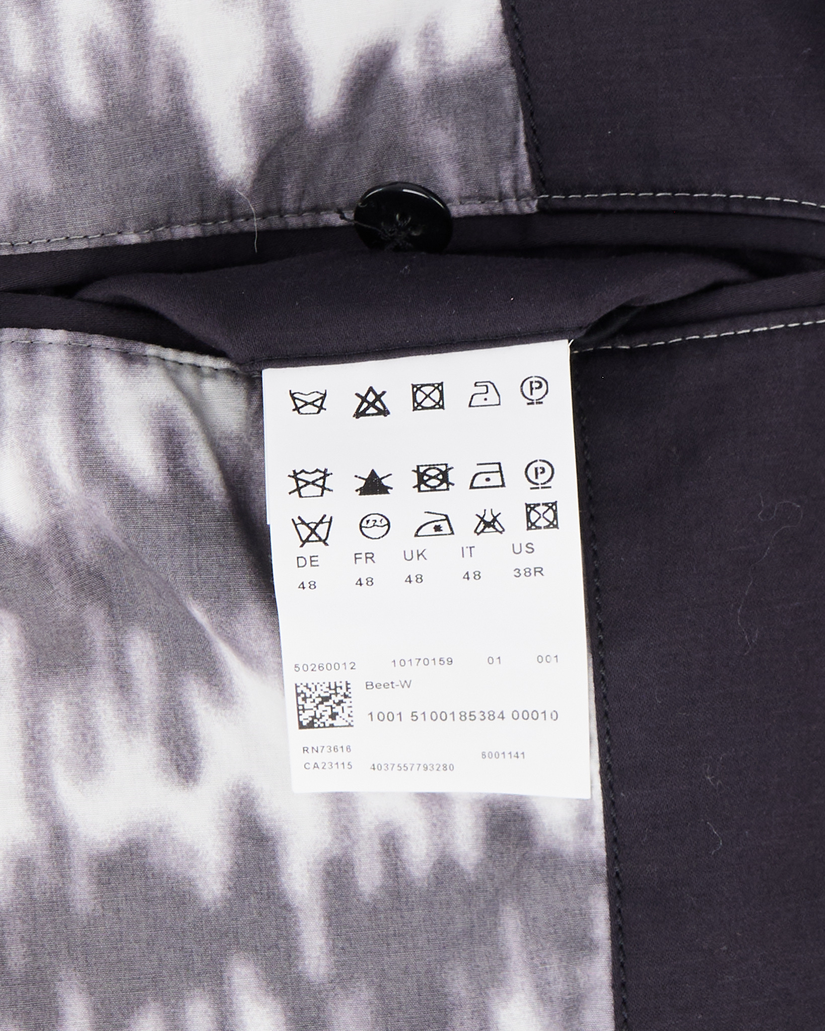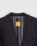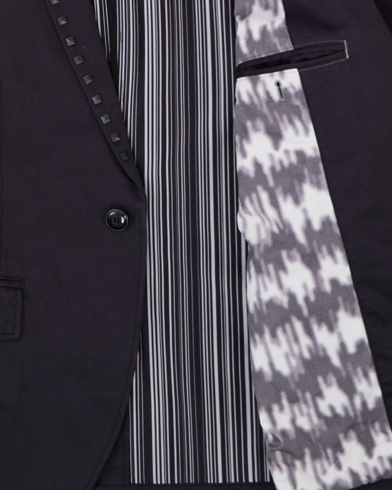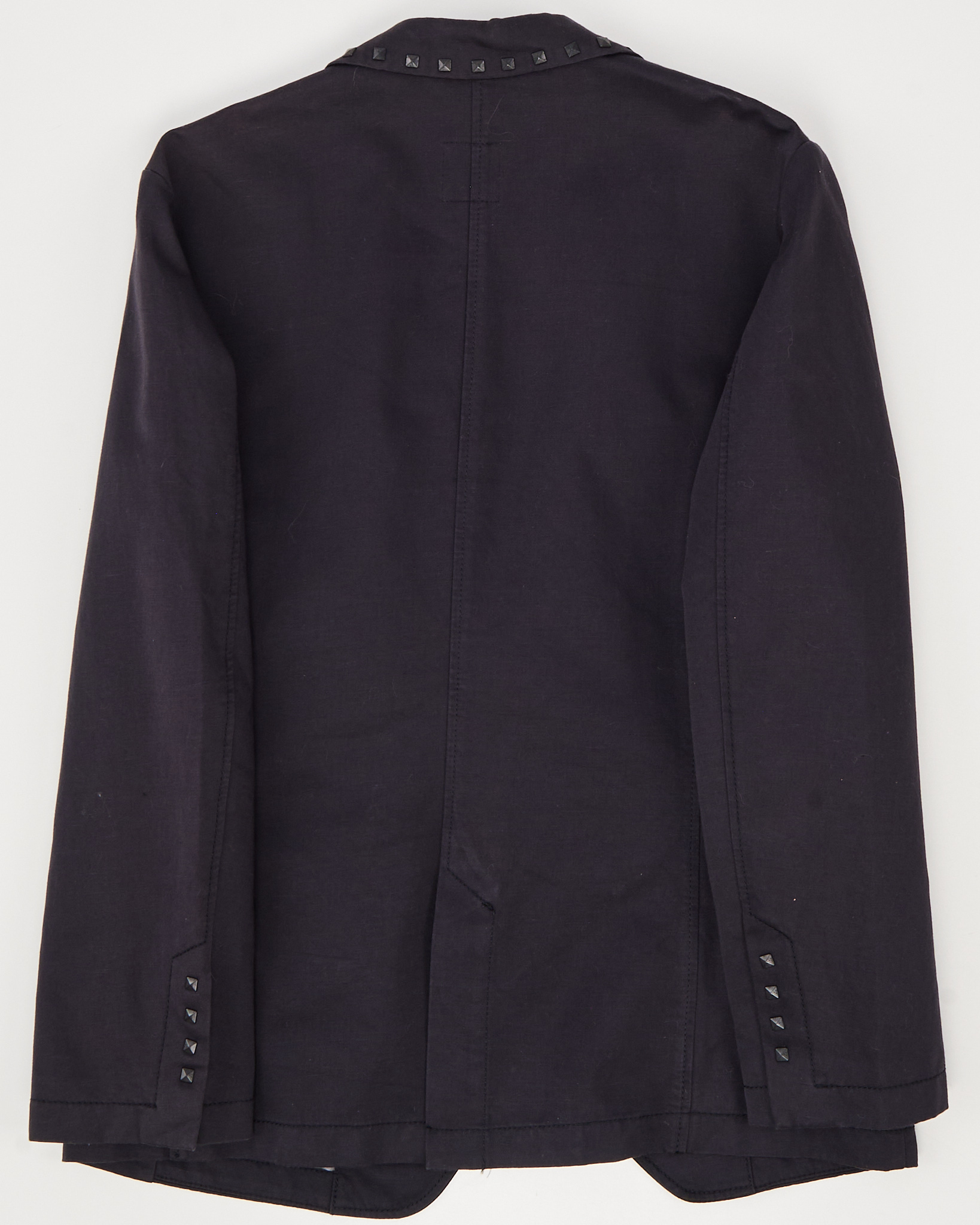 Пиджак Hugo Boss с декоративными заклёпками. Пиджак из 72% хлопка, посадка чёткая, качественная фурнитура, карманы по бокам. Отделка лацканов металлическими заклёпками, контрастная подкладка.