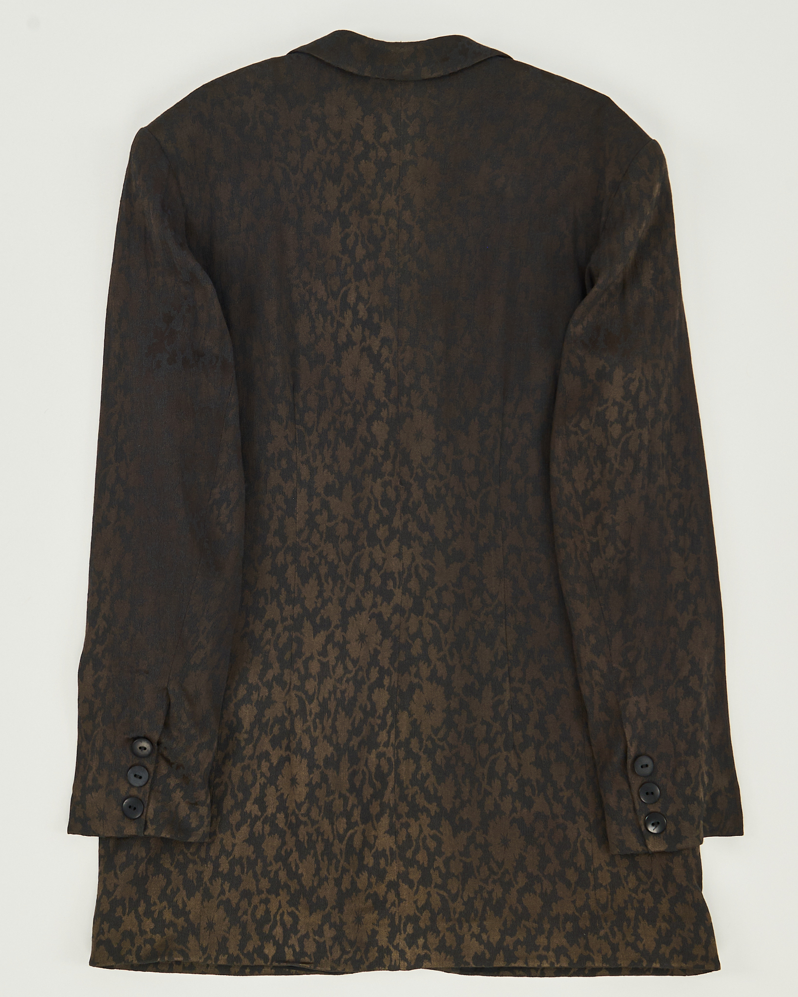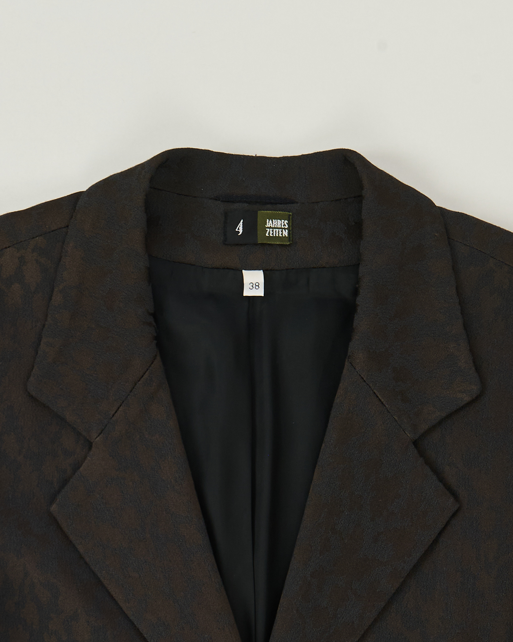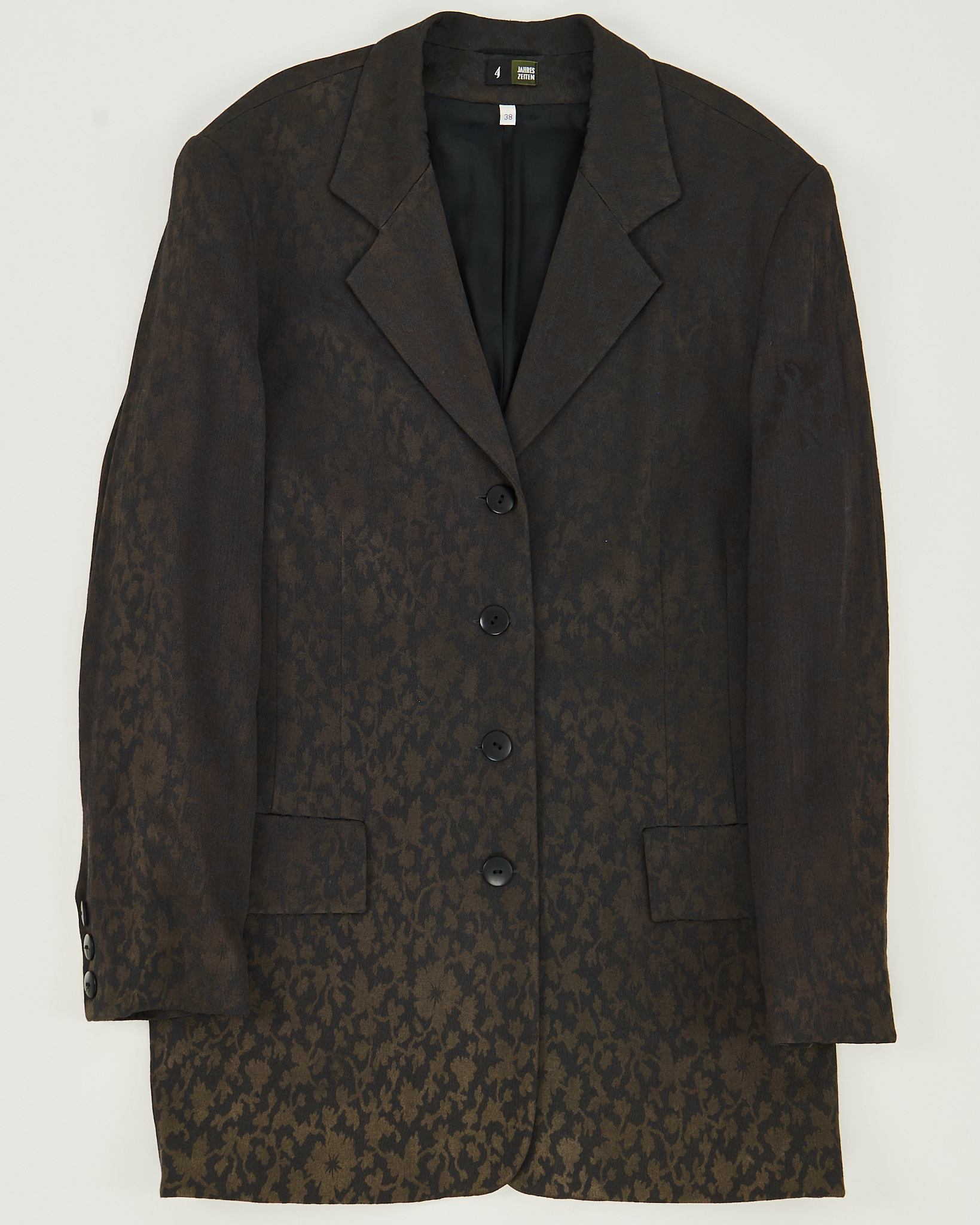 Жакет из шерсти от Jahres Zeiten. Посадка прямая, линия плеч расслабленная. Акцентный принт, ткань "хамелеон" красиво переливается, по бокам функциональные карманы.