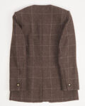 Жакет приталенного силуэта, с V-образным вырезом. Дополнен двумя карманами, не распоротыми. Застежка на пуговицы янтарно-коричневого оттенка. Сделан в Италии