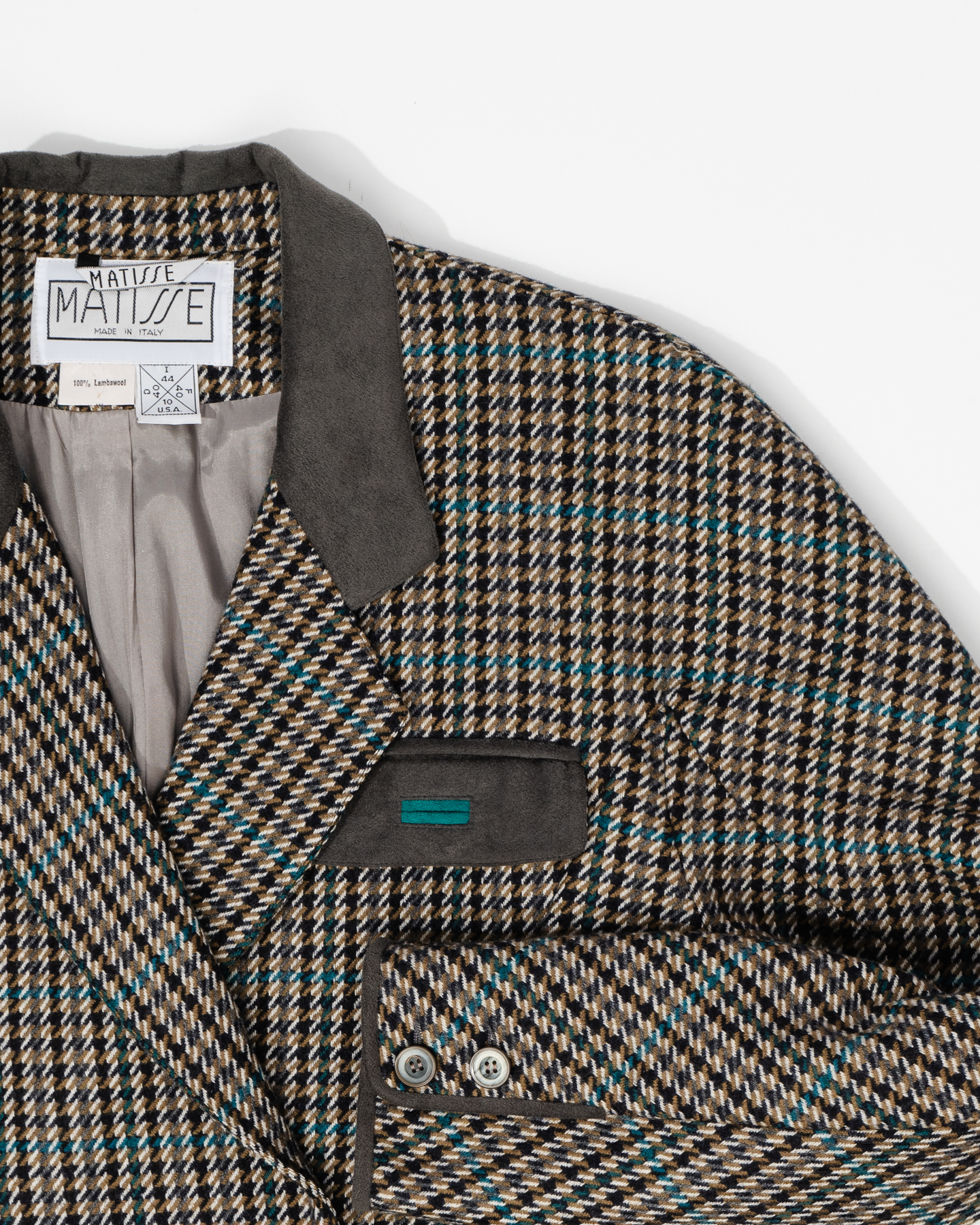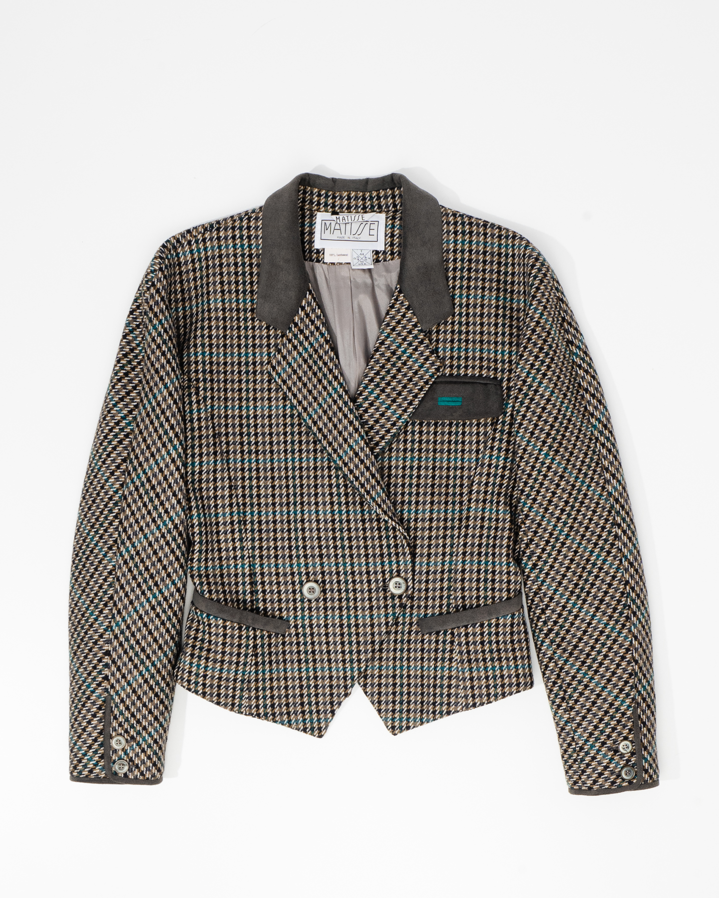 - Двубортный фасон усиливает структуру и делает образ более собранным.