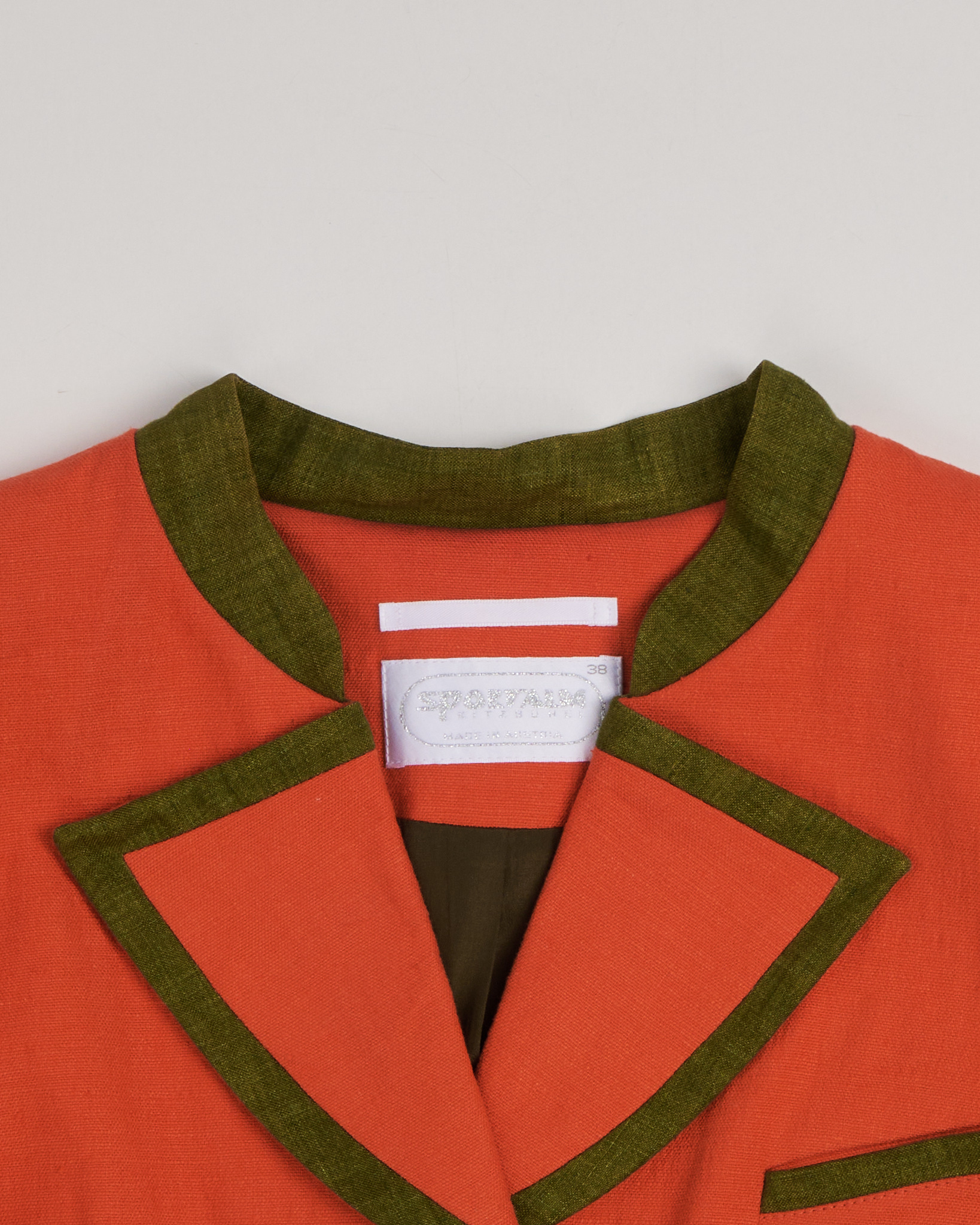 Жакет из плотной ткани от бренда Sportalm. Прямой крой, укороченная длина. Контрастная окантовка по воротнику, бортам и карманам. Пуговицы из натурального материала. Made in Austria.