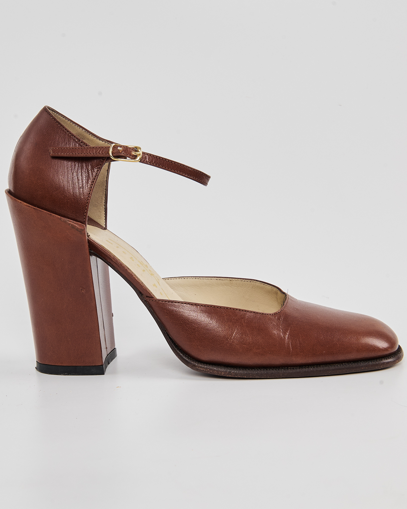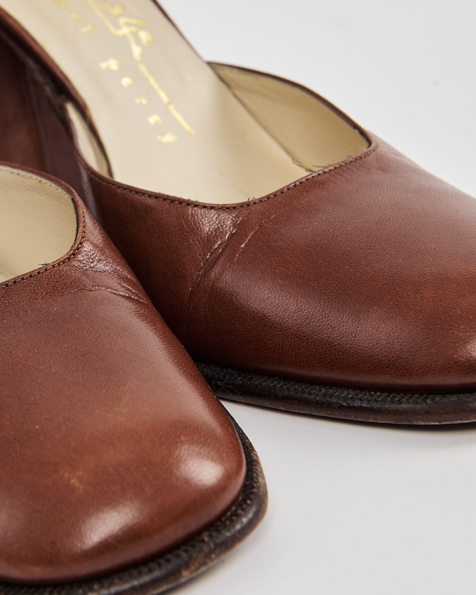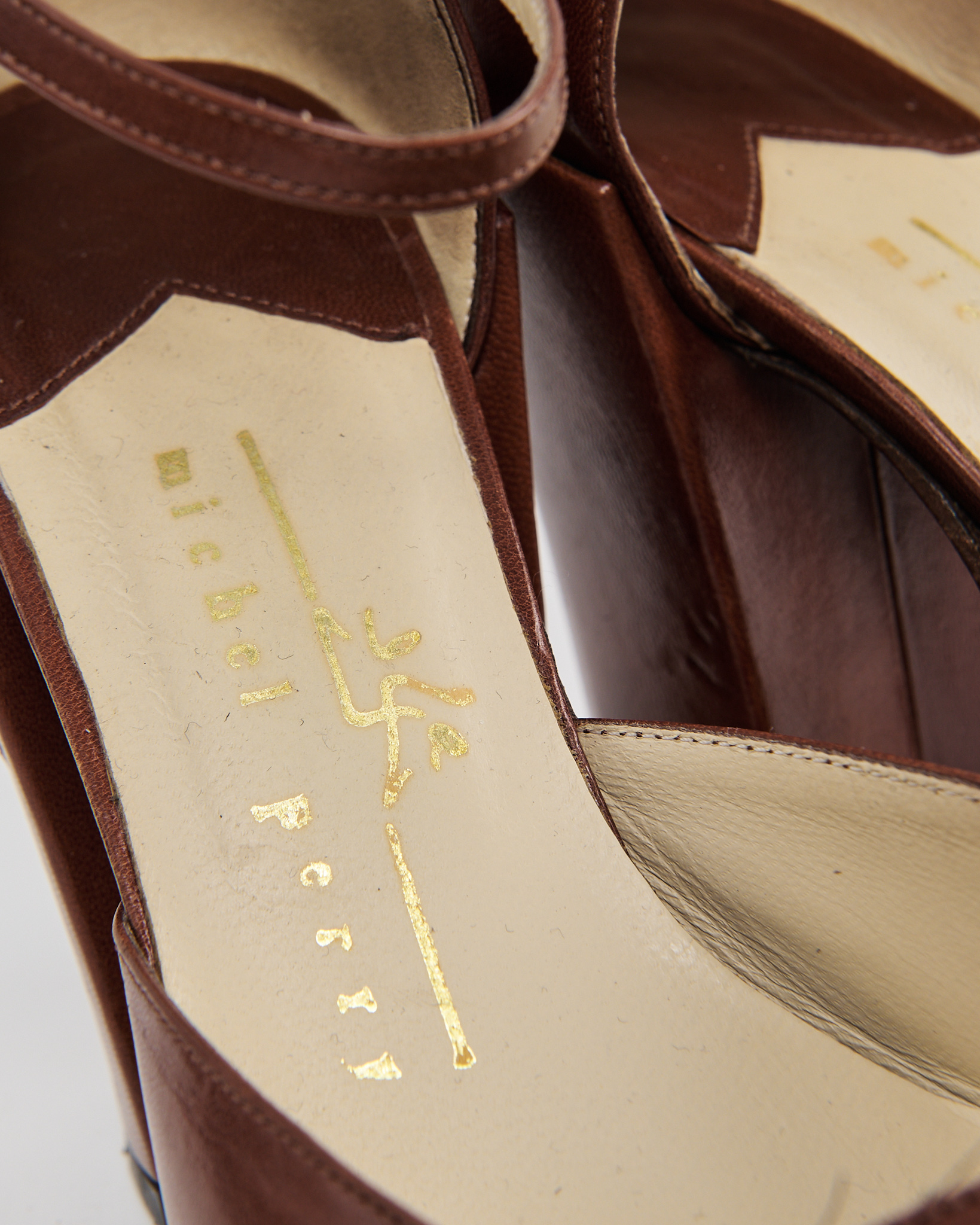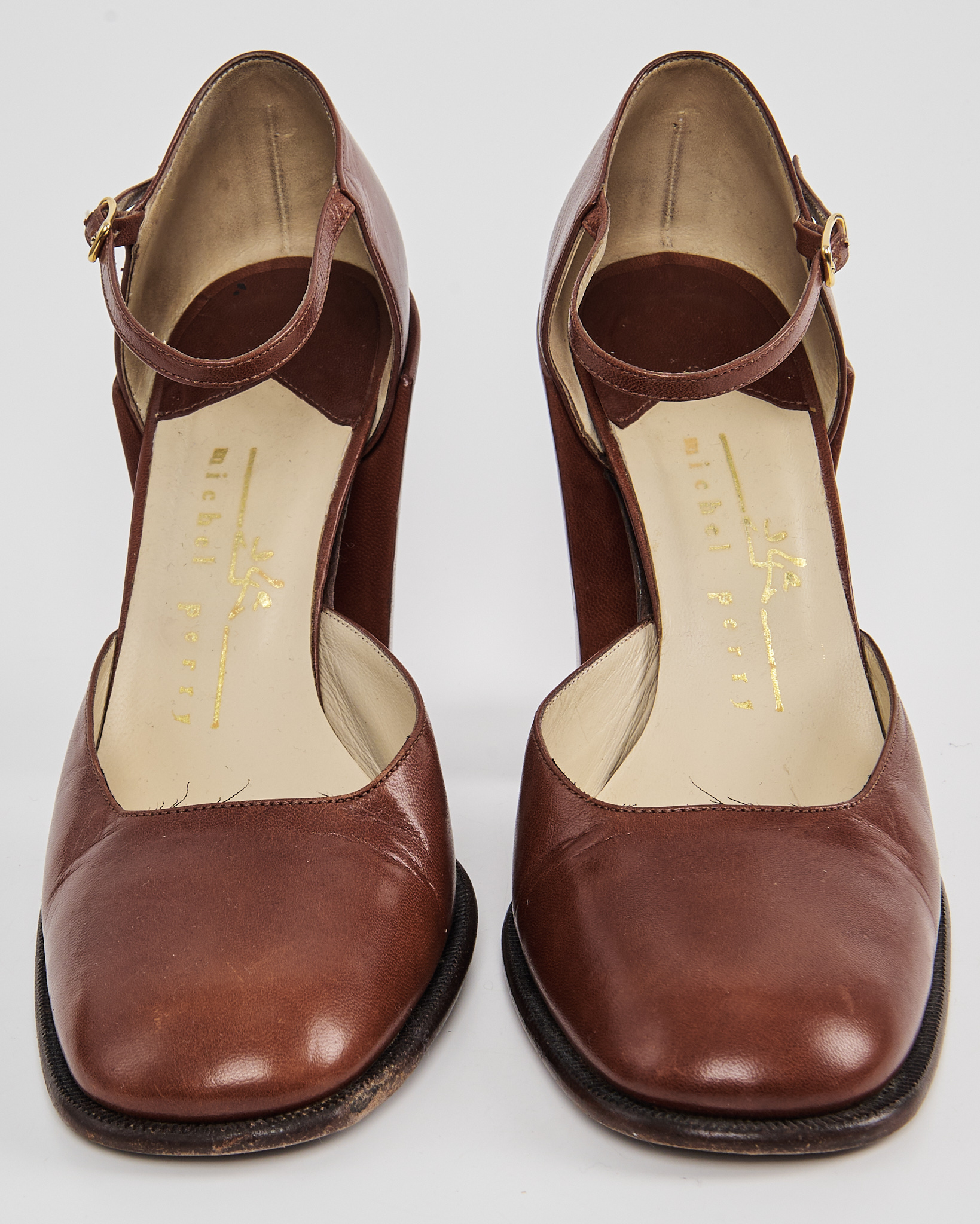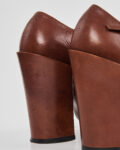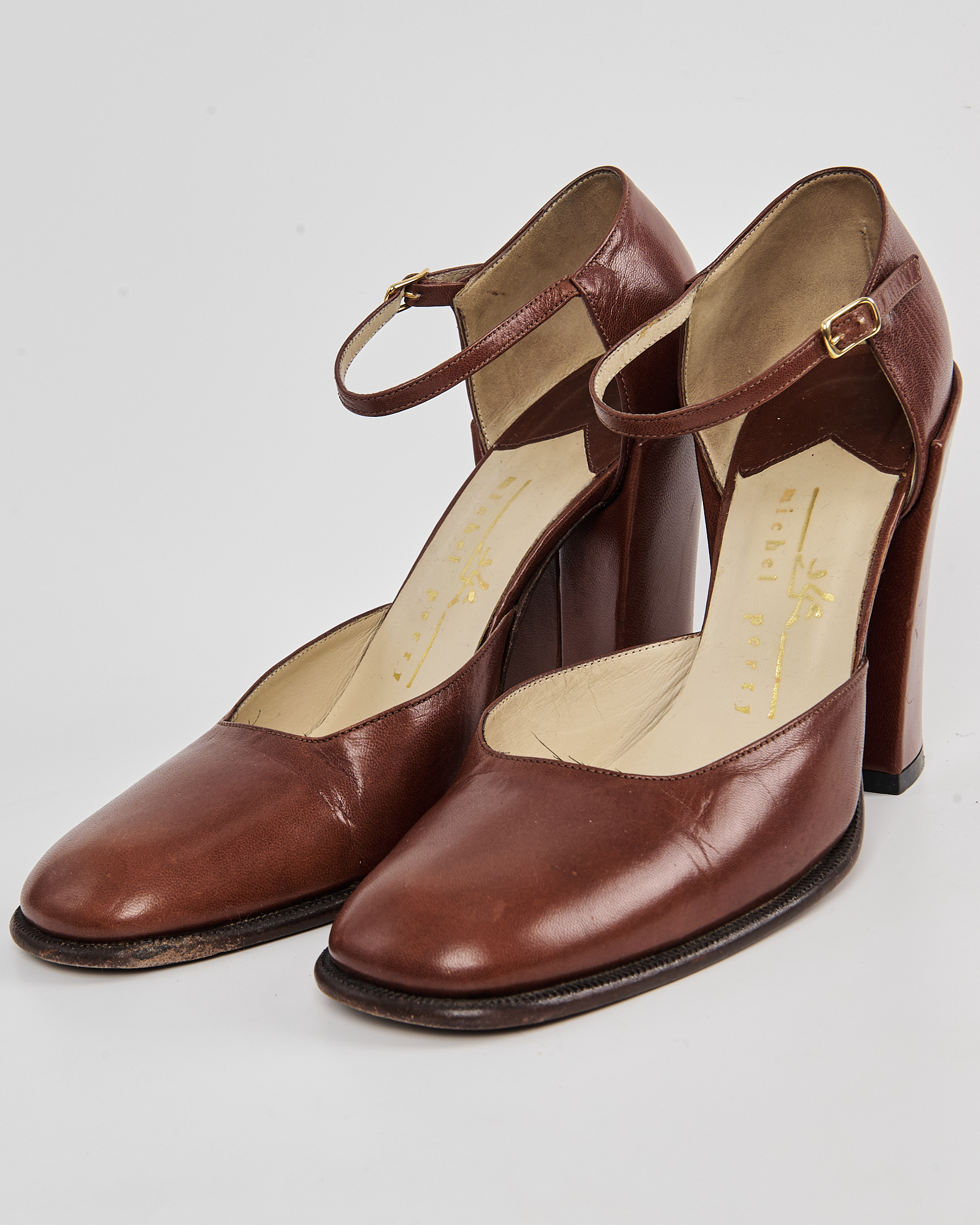 Туфли от бренда Michel Perry, выполненные из гладкой коричневой кожи. Подошва из натуральной кожи с клеймом Vero Cuoio и маркировкой Made in Italy