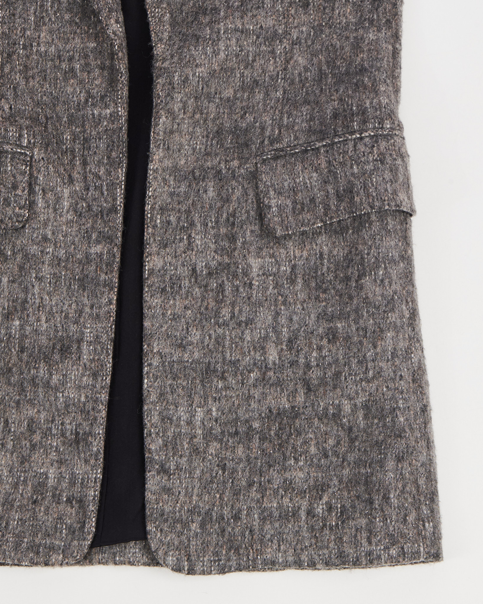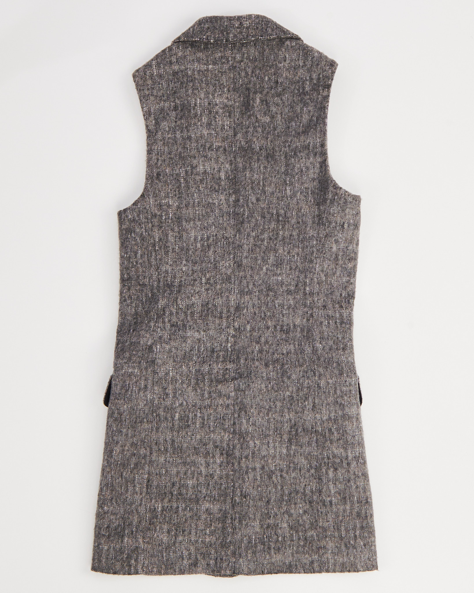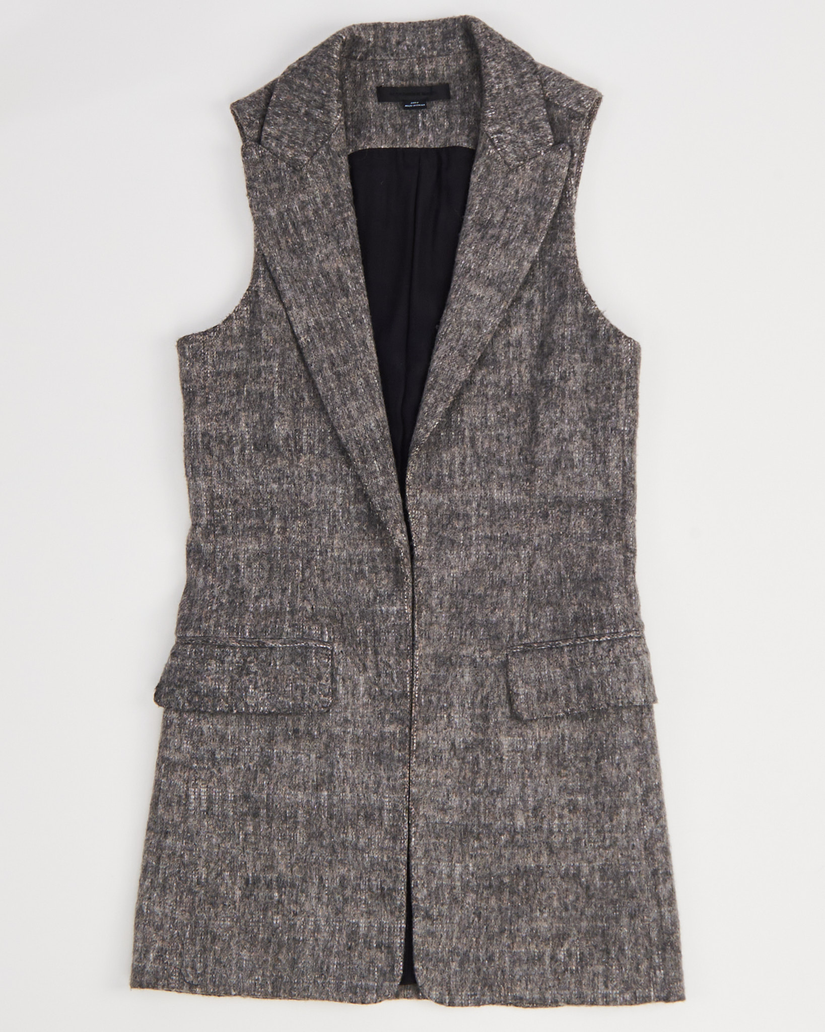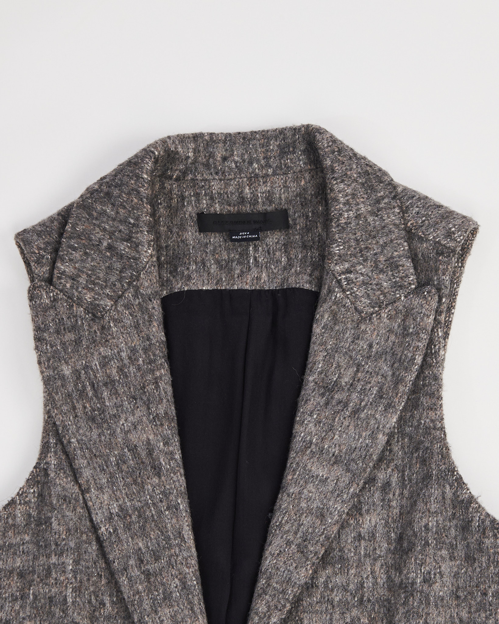 Жилет шерстяной Alexander Wang серо - меланжевого цвета. Прямой крой. Глубокий V-вырез и широкие лацканы. По бокам функциональные карманы с клапанами. Внутри гладкая подкладка.