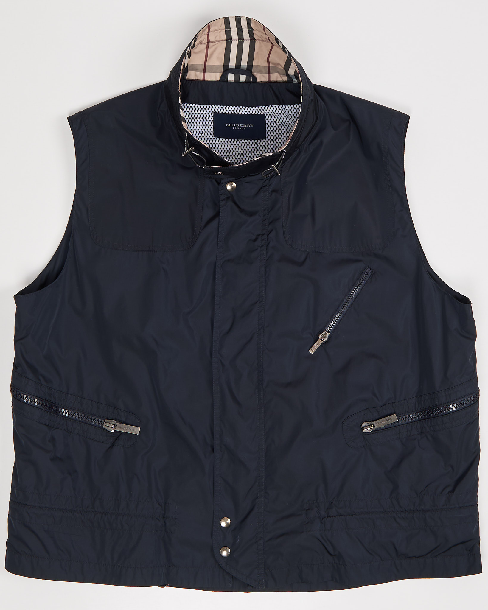Жилет Burberry из  нейлона. Посадка свободная, с акцентом на комфорт. Контрастная подкладка и фирменный воротник на резинке с логотипом бренда. Качественная фурнитура и функциональные карманы по бокам.