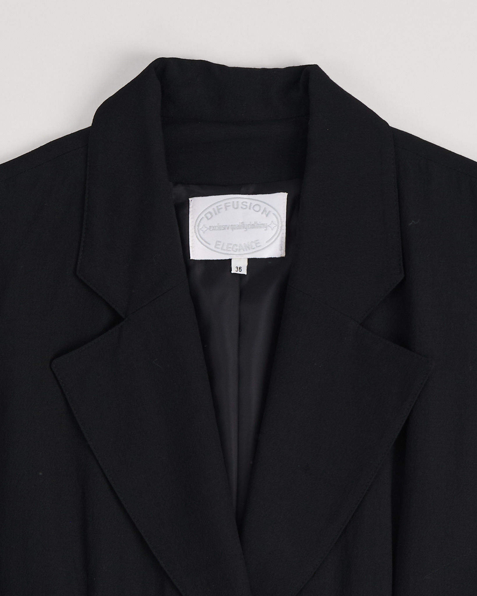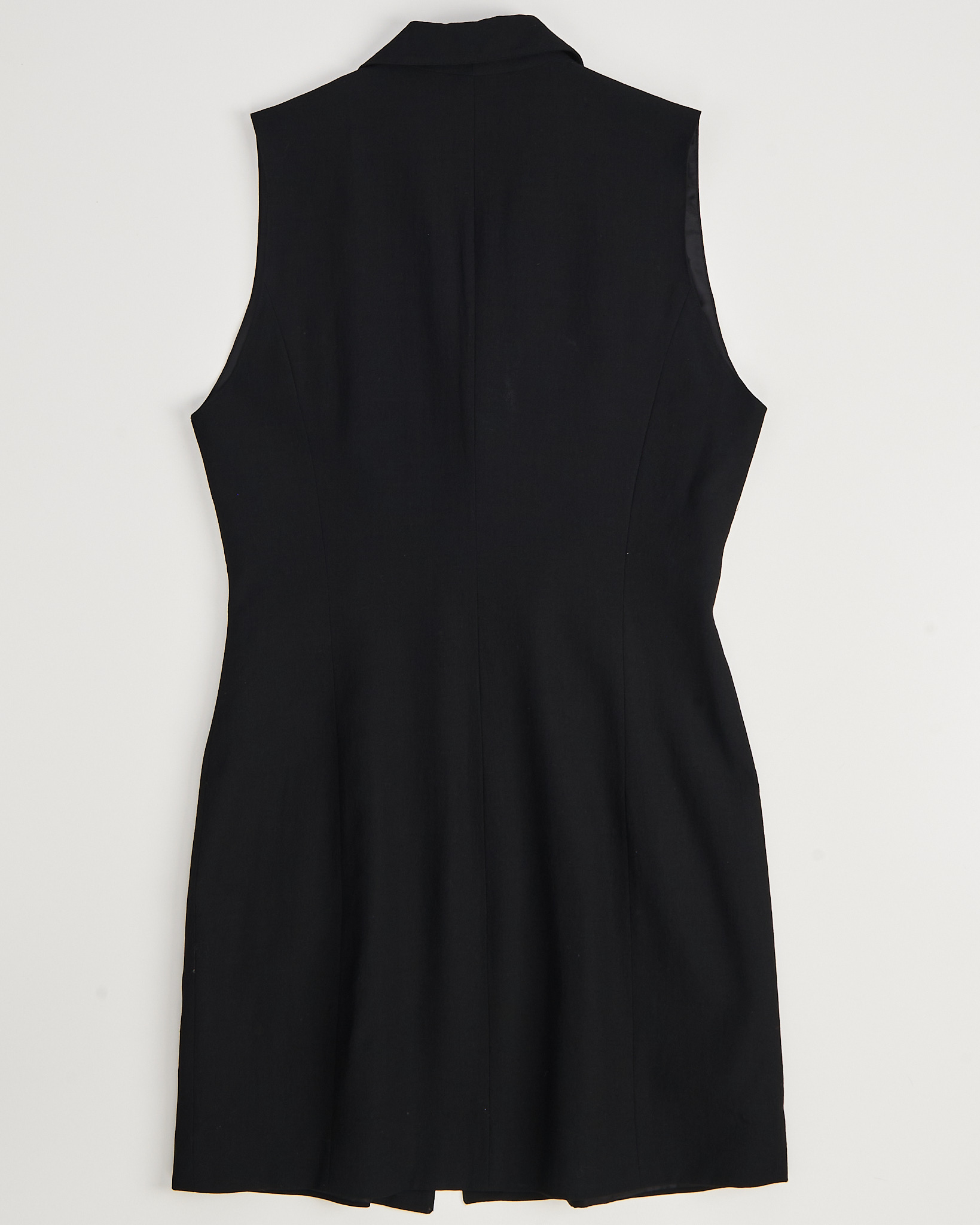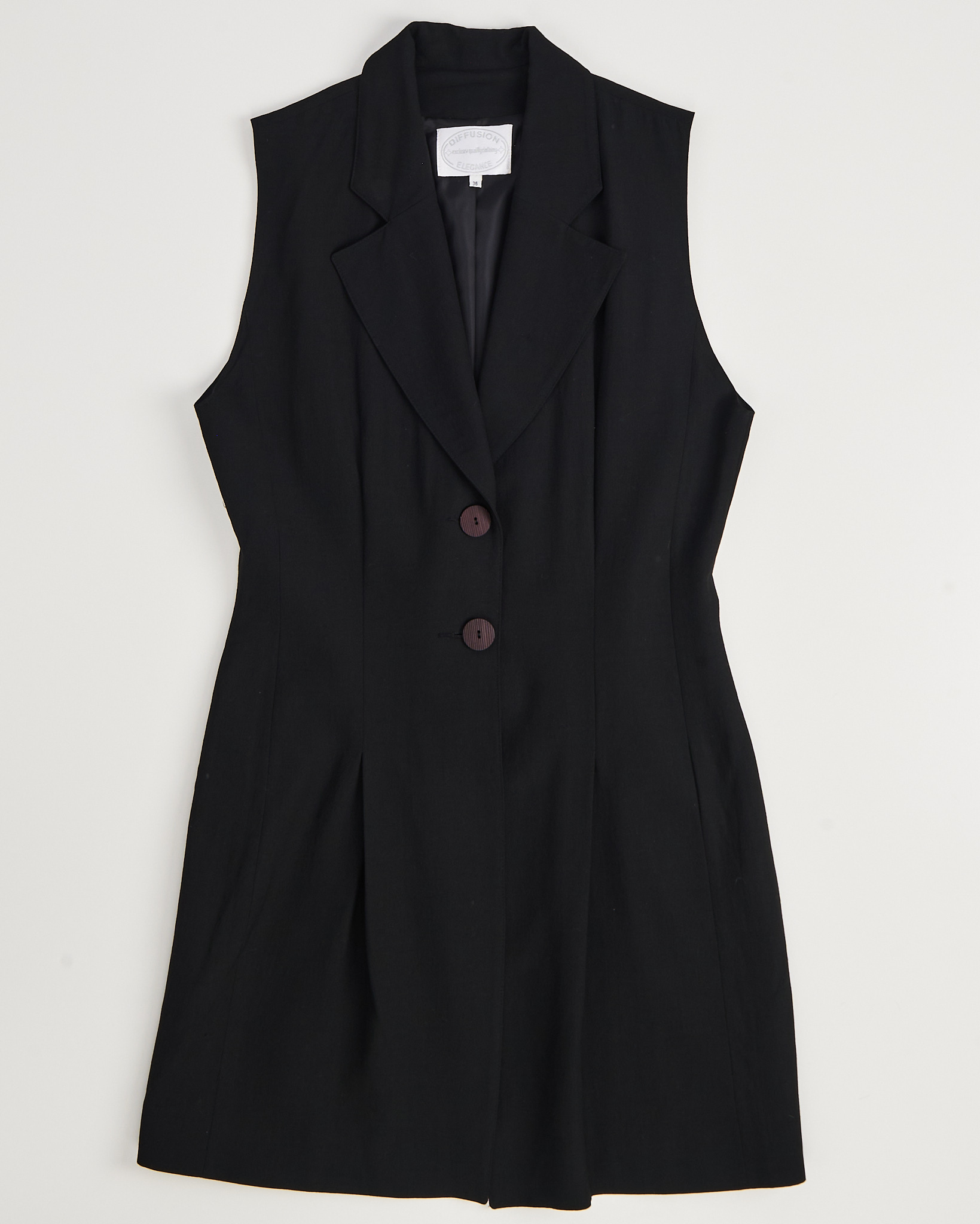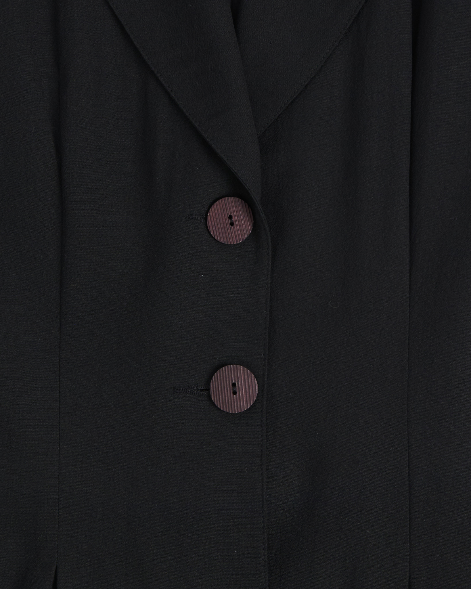 Чёрный жилет из вискозы и шерсти с двубортной застёжкой. Прямой крой и приталенная посадка. Застежка на акцентные крупные пуговицы.