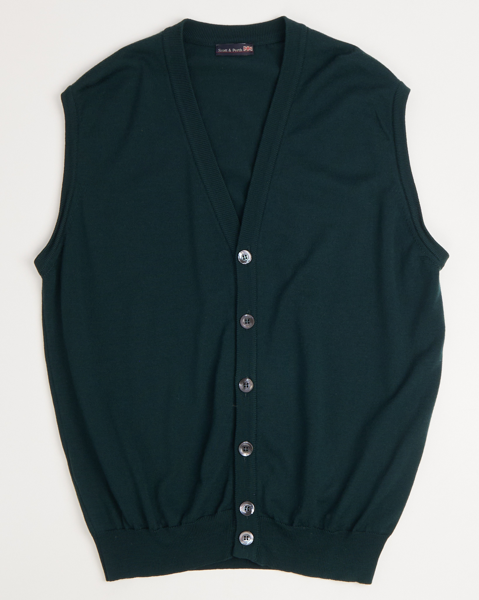 Жилет из тонкого трикотажа от Scott & Perth. Прямой крой, свободная посадка по корпусу. V-образный вырез и застежка на пуговицах. Эластичная резинка по низу.